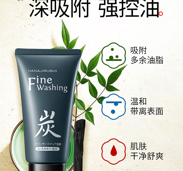 花印 备长炭洁面乳洗面奶120g 深层清洁洗面奶男女士去角质