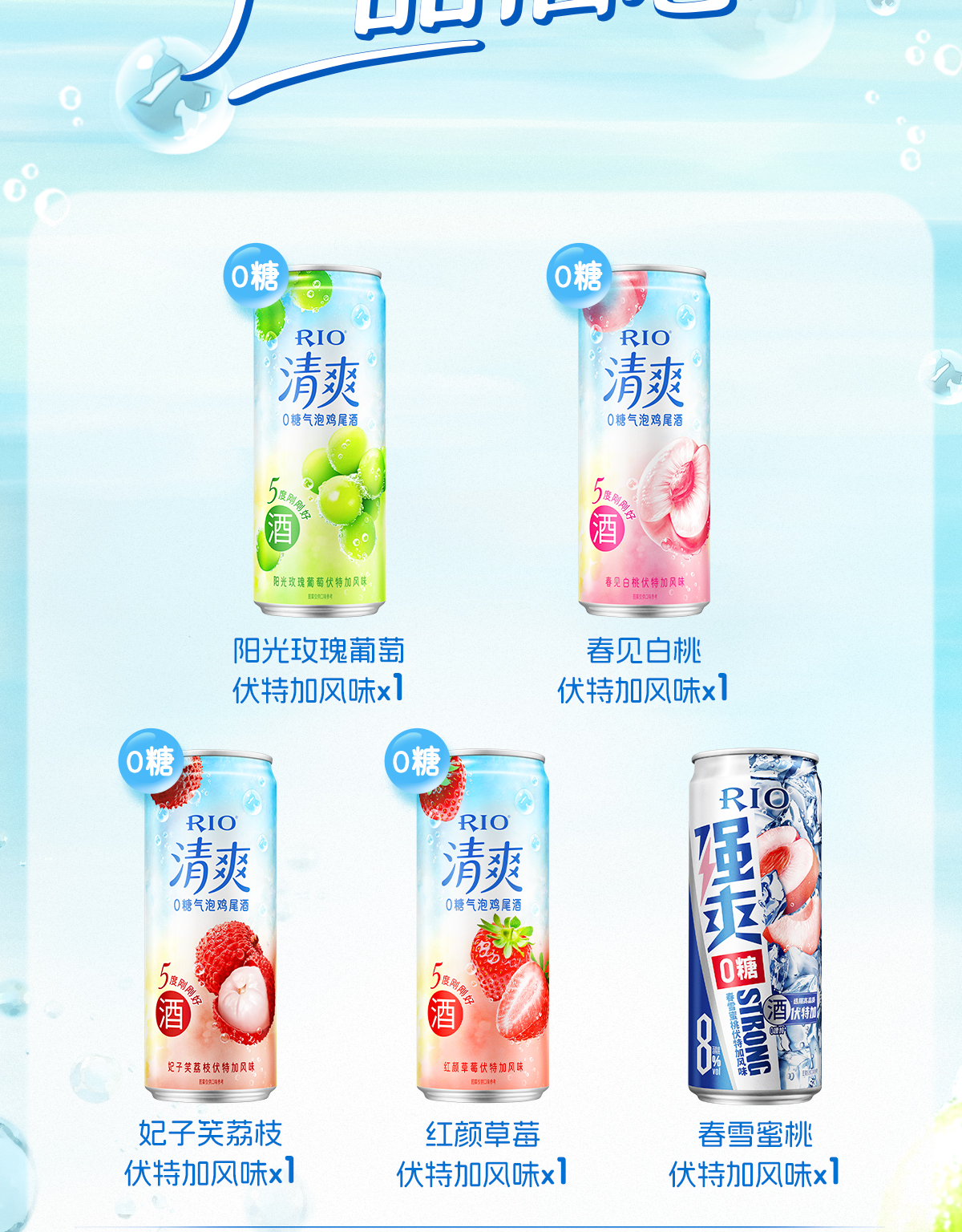 RIO锐澳鸡尾酒5度清爽8度强爽组合330m*5罐低度气泡果酒