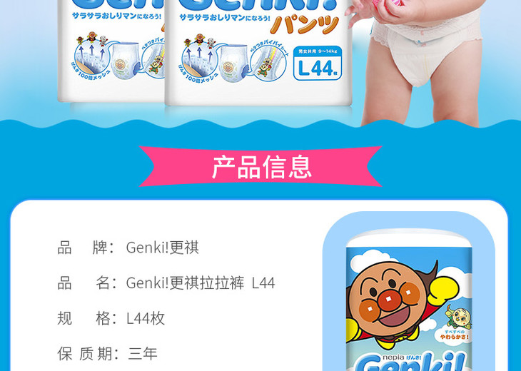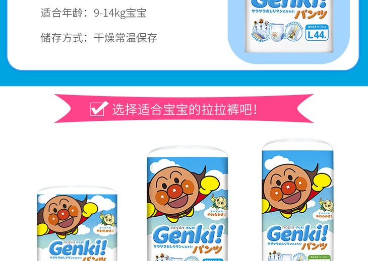 【三包装】日本nepia妮飘Genki!更祺拉拉裤 XL38 L44 M58