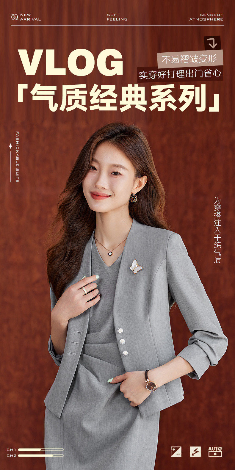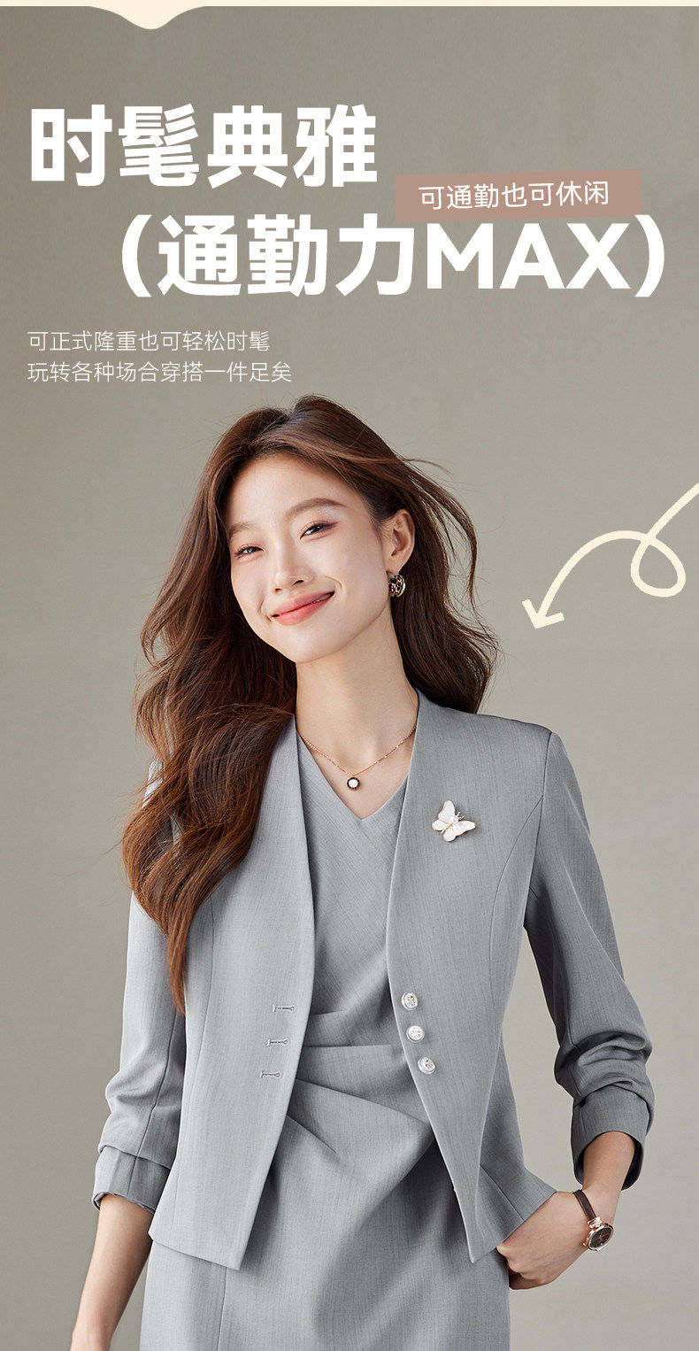 「自」全新升级【铂金会员174/天猫229/差价55】(20707)洛诗琳气质通勤西装外套女2026春季新款无领收腰短外套