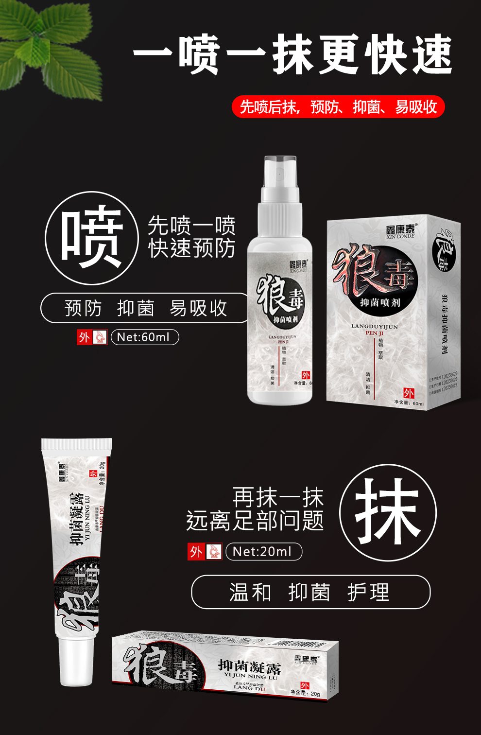 【预售-9月8日配送】鑫康泰狼毒组合/1组(喷剂60ml*1瓶+凝露20g*1支)限用日期:27年2月