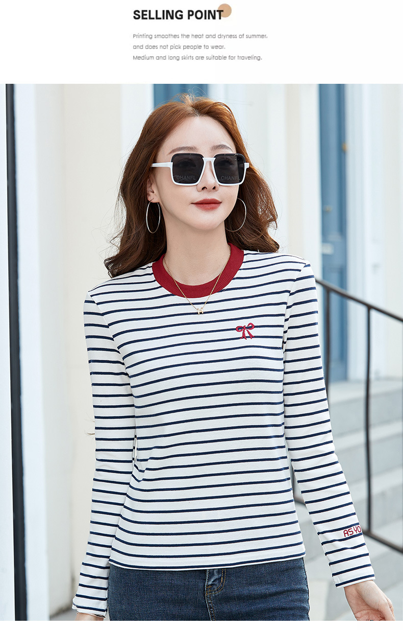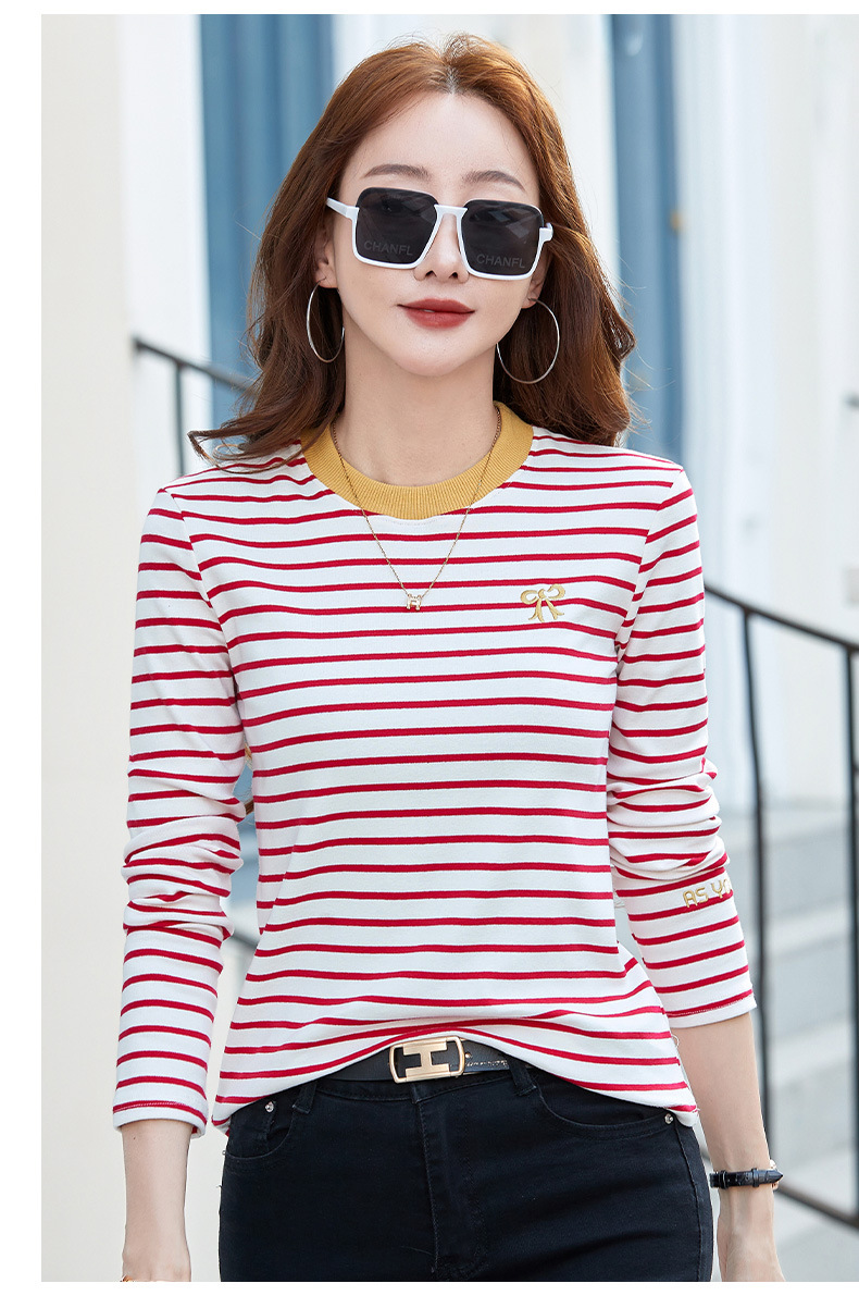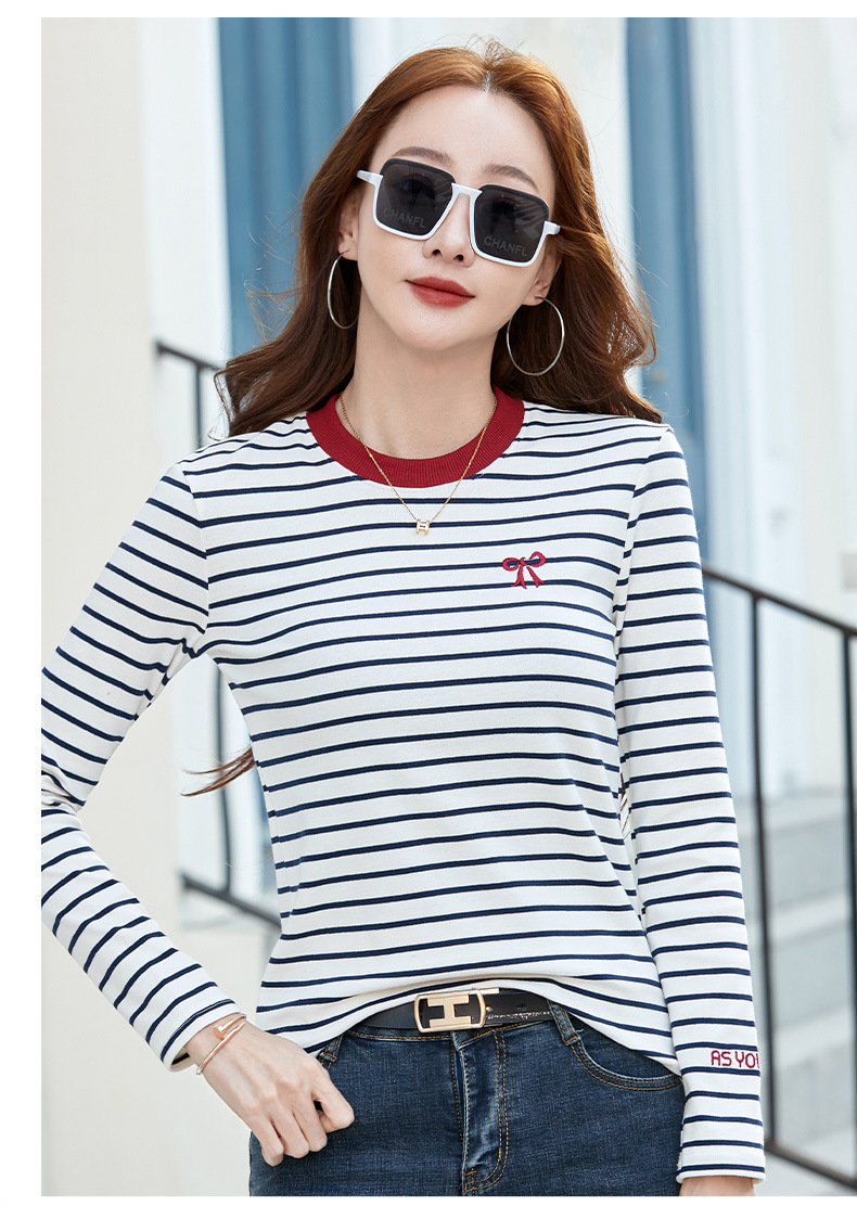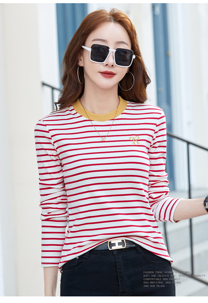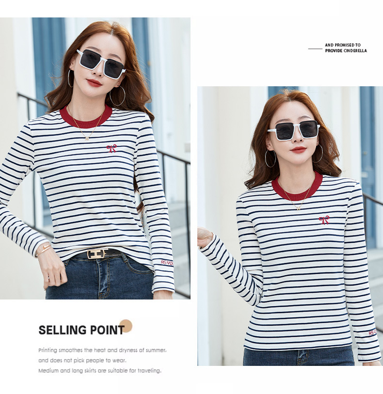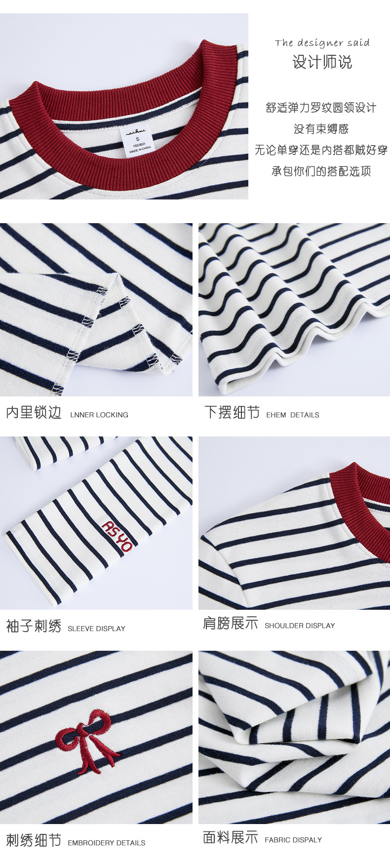 百媚生 棉质条纹针织衫女蝴蝶刺绣上衣482