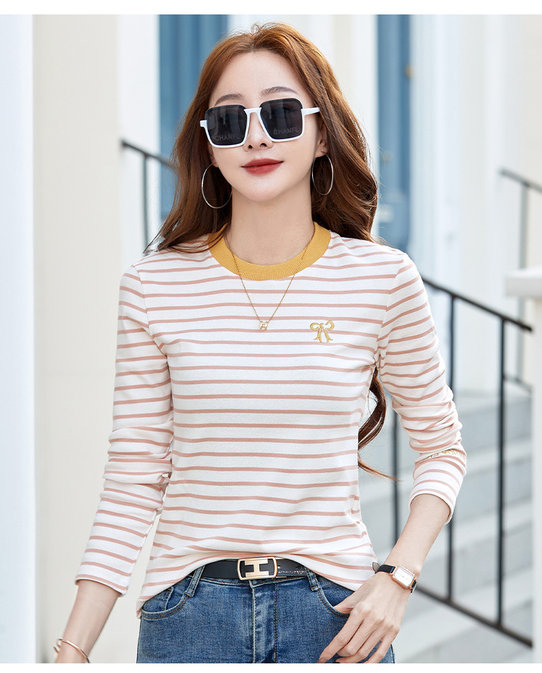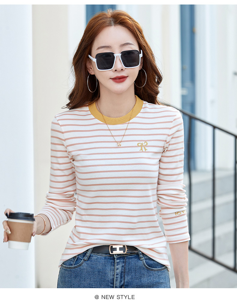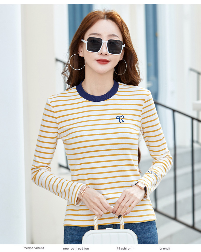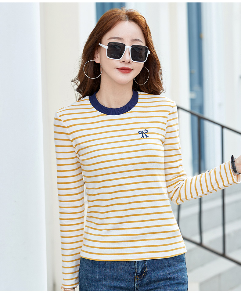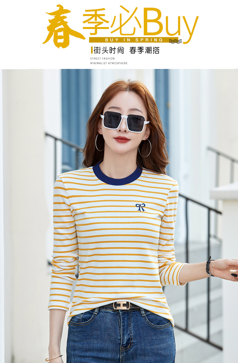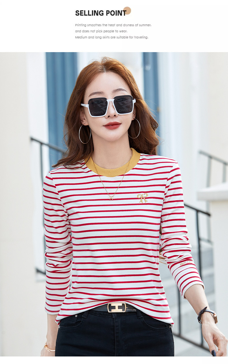 百媚生 棉质条纹针织衫女蝴蝶刺绣上衣482