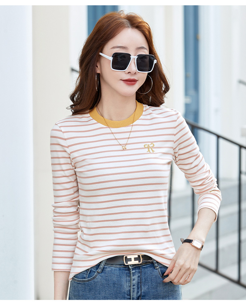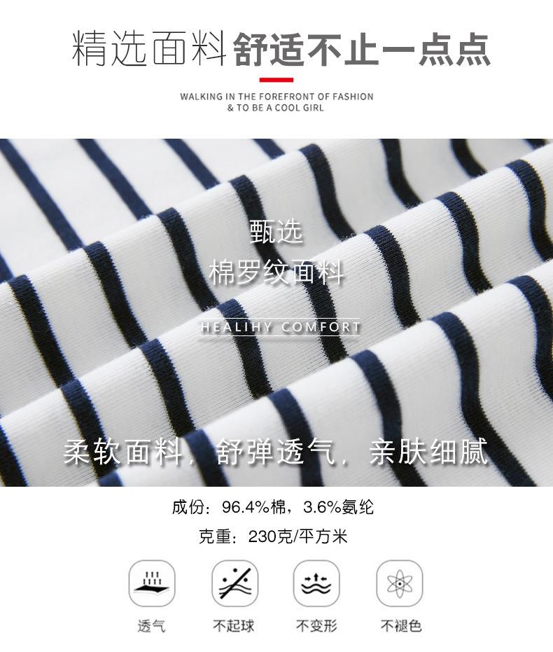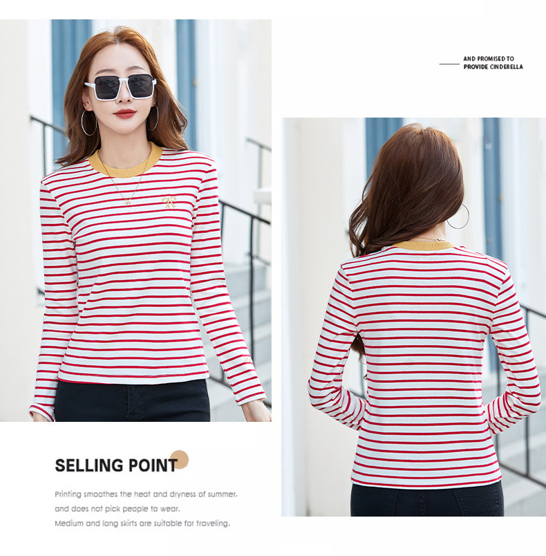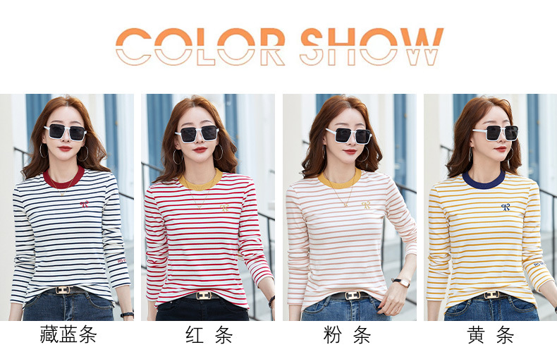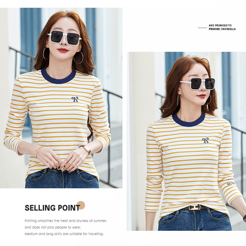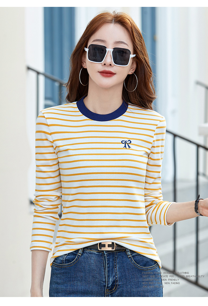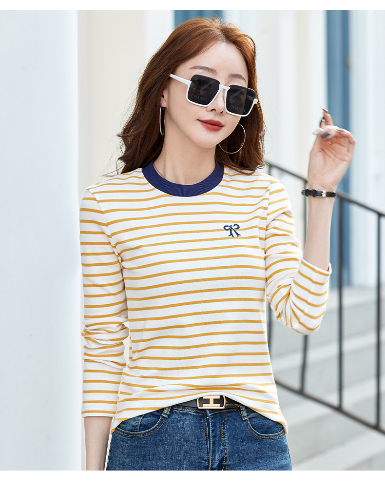 百媚生 棉质条纹针织衫女蝴蝶刺绣上衣482