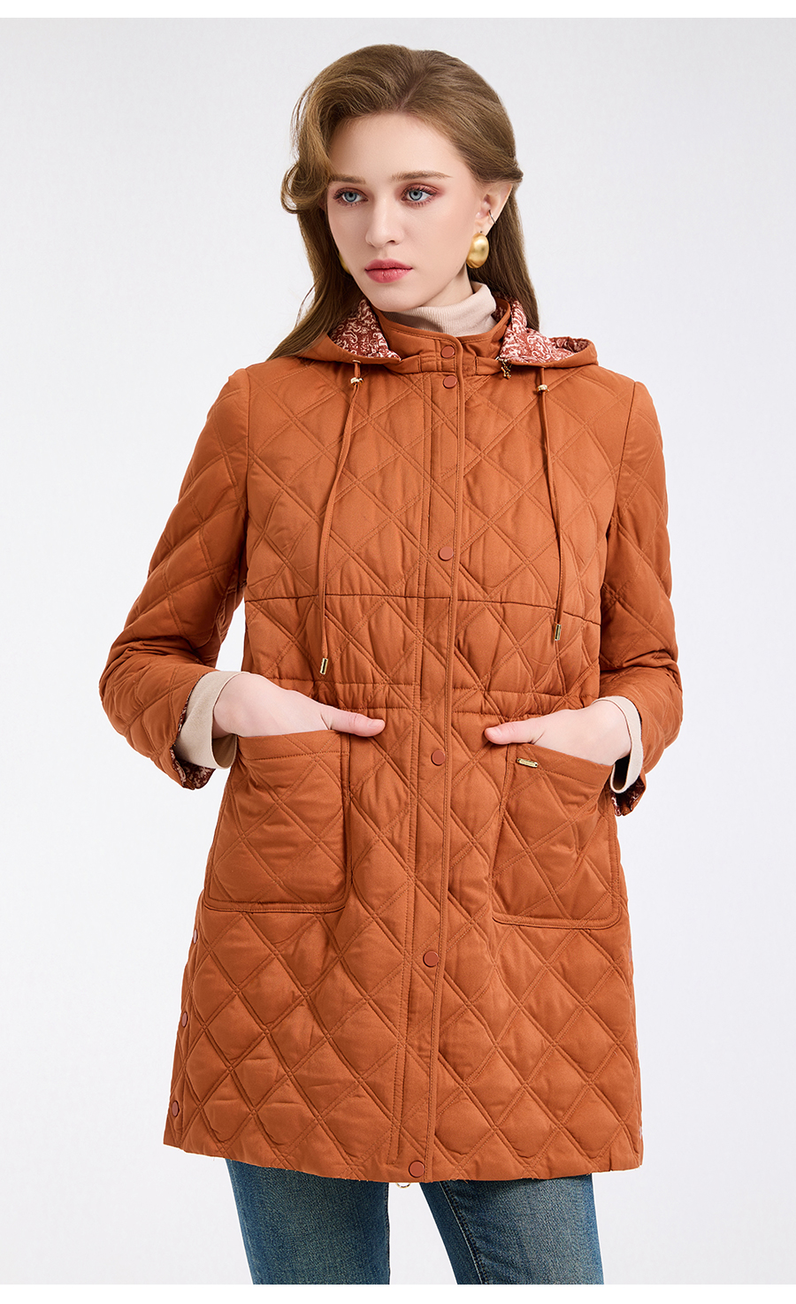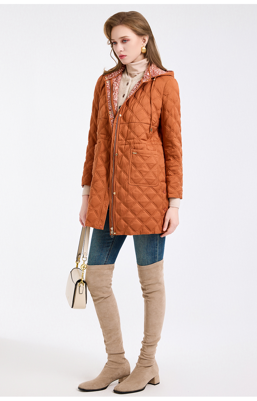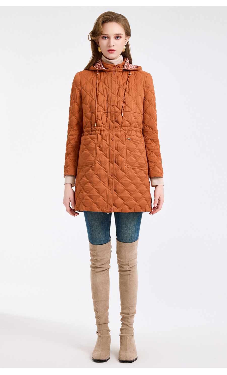 【鹅绒】乔万尼活力琥珀桔连帽宽松绗缝90白鹅绒羽绒服ED4T841