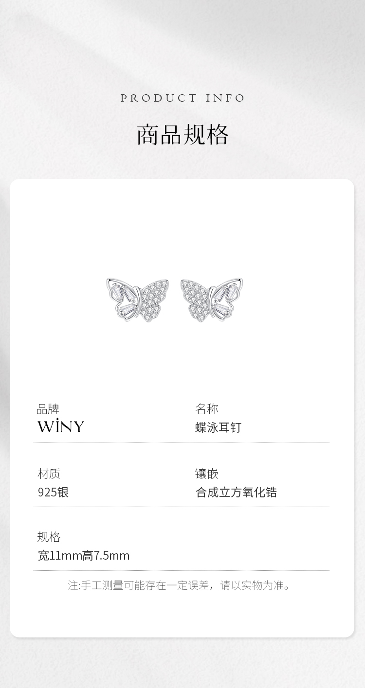 Winy 925 银蝶泳耳钉送女友闺蜜节日生日礼物