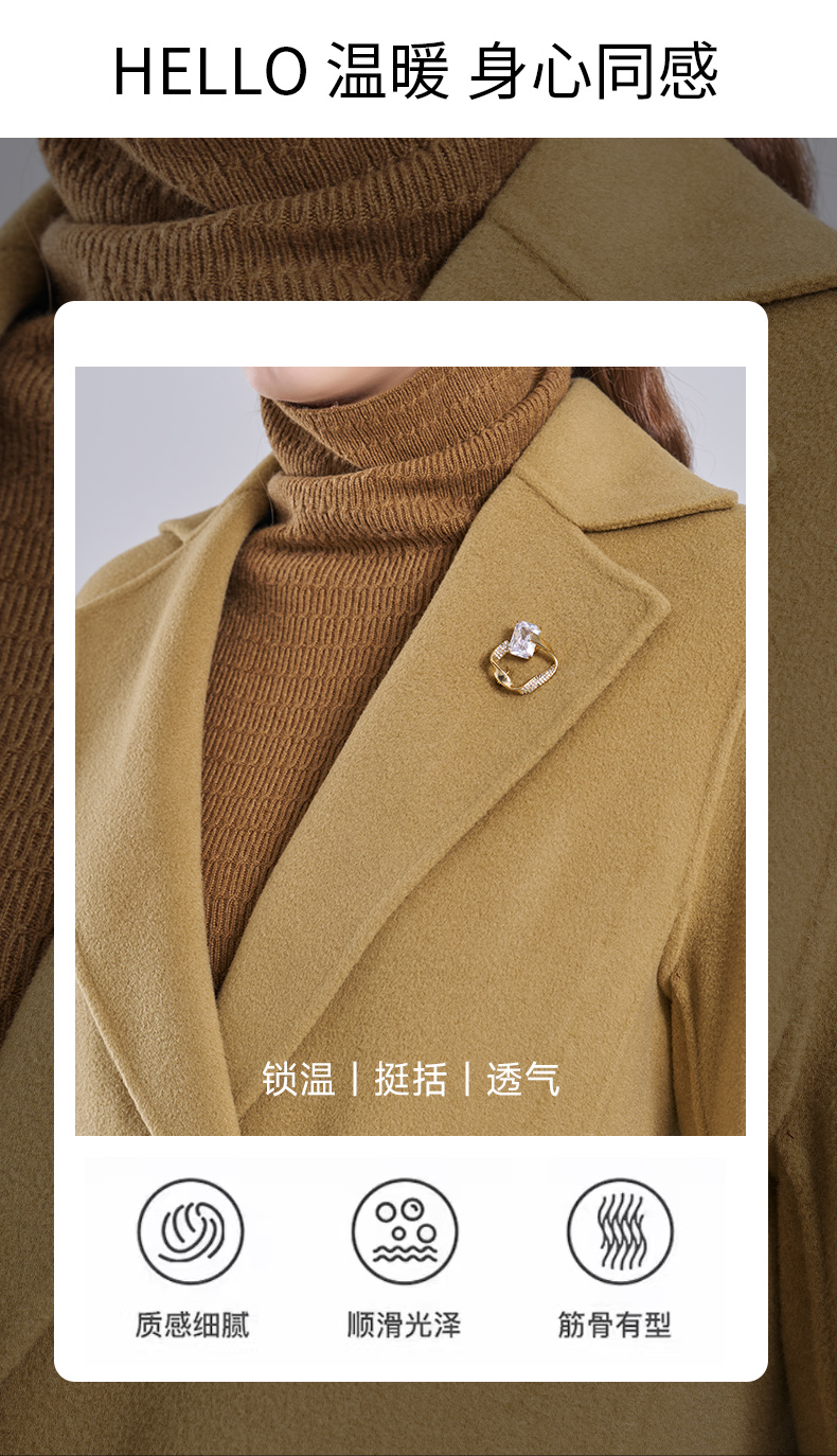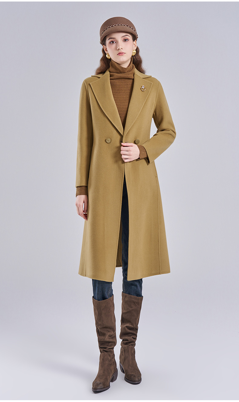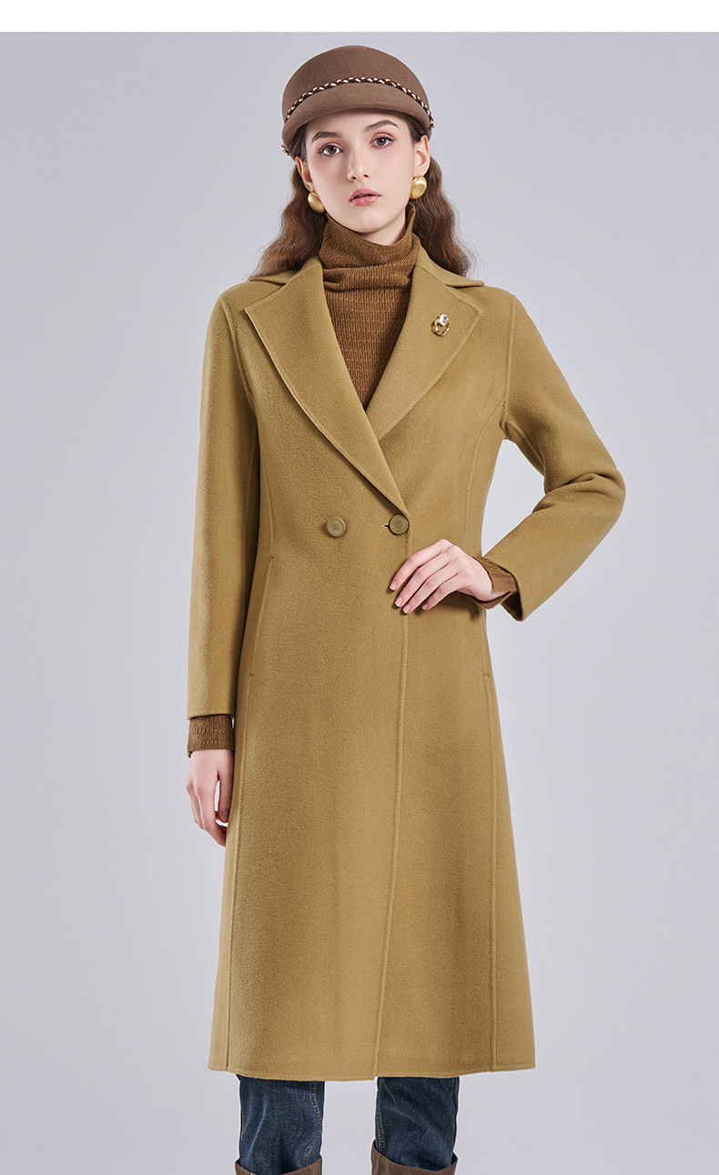 乔万尼重磅绵羊毛羊绒大衣西装领收腰设计外套EF4A223