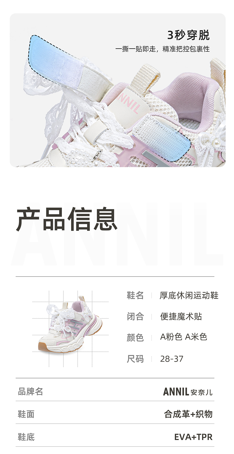 ANNIL/安奈儿童鞋韩系女童春秋软底跑步透气休闲运动鞋儿童鞋子HG5305548
