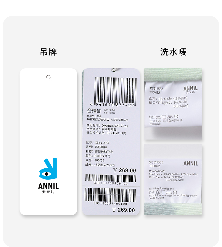 男童圆领长袖卫衣春季新款安奈儿童装实体店同款XB511535