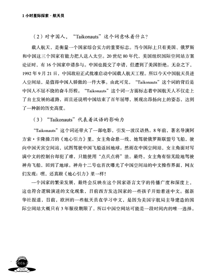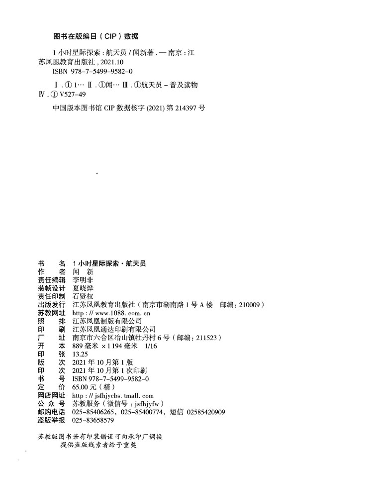本书尝试用“1小时”这一时间概念让读者全面了解航天员的学习、训练、工作以及在空间站里的生活情况,通过整理和归纳出来的100多个知识点介绍了航天员在太空中会遇到的各种“烦心”事情和那些与地球生活不同的经历,如航天员在太空如何识别方向、能否剪指甲和流泪了怎么办……等等。除了让读者能快速了解关于航天及太空的各种有趣知识外,更能让读者深刻领会人类对未知宇宙的探索精神,铭记那些执着于科学探索的人和事迹。值得一提的是,本书的撰稿和编辑过程,恰逢我国航天员进入空间站在轨工作期间,本书专辟一章,介绍中国航天事业的发展历程,让读者和中国航天人一起见证那些激动人心的时刻。