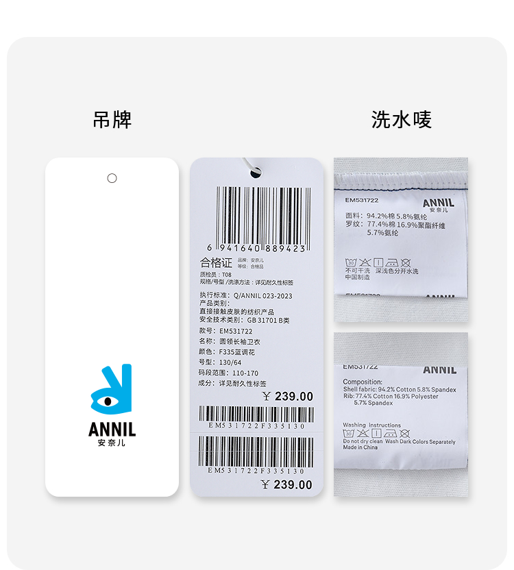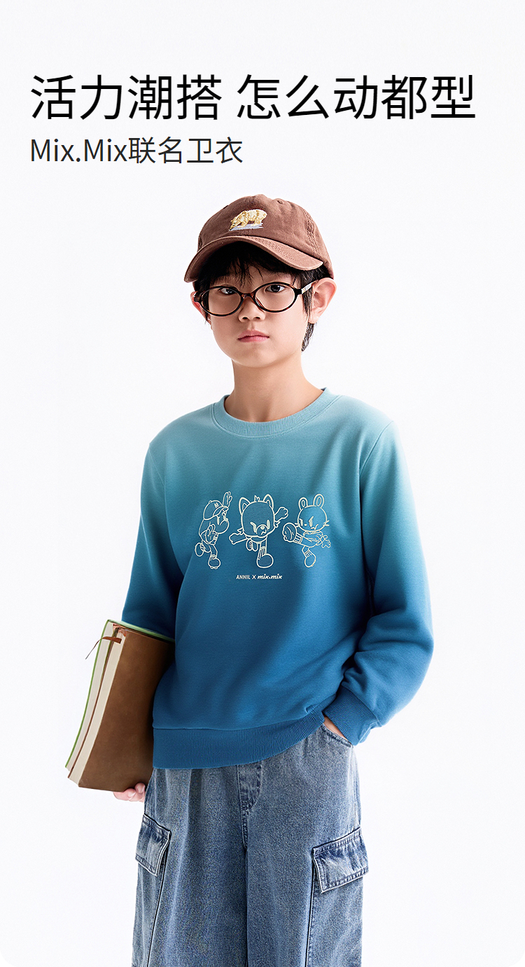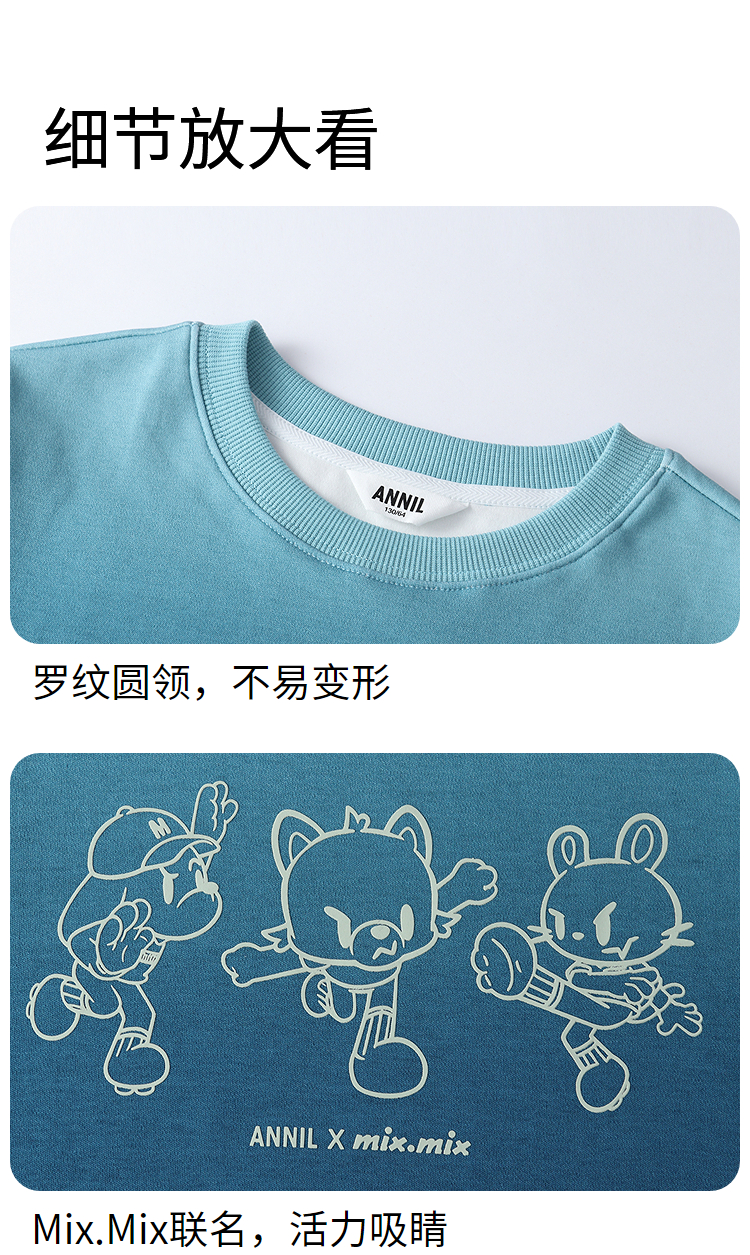 Annil联名款【Mix.Mix】男女童圆领长袖卫衣秋季新款安奈儿童装EM531722