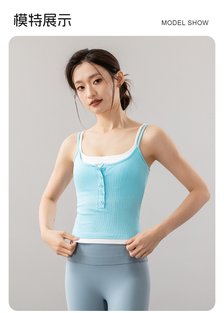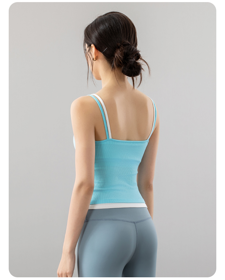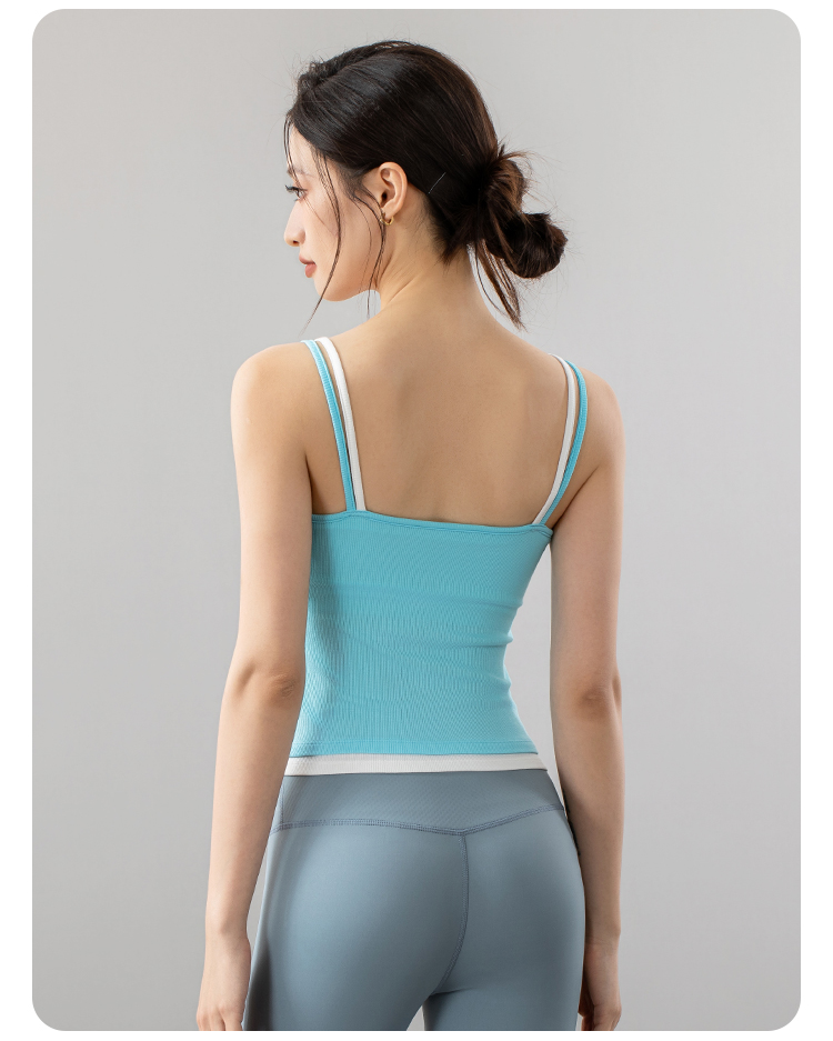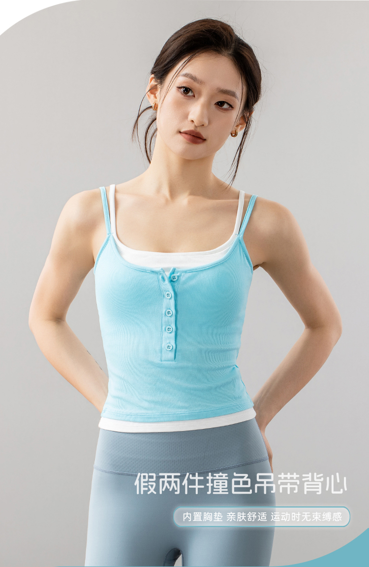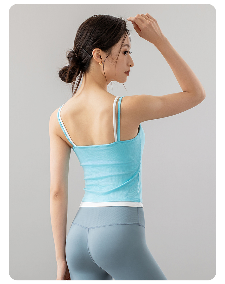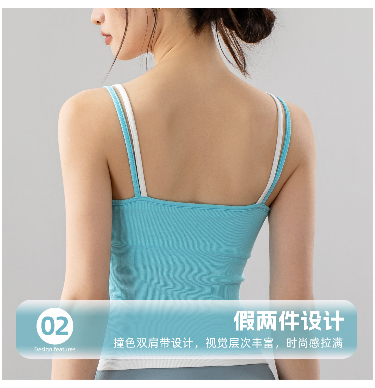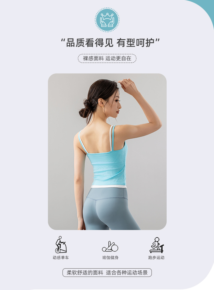 跃牌【海听系列】假两件瑜伽服上衣女 带胸垫文胸一体拼色打底吊带背心XC85