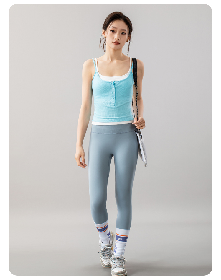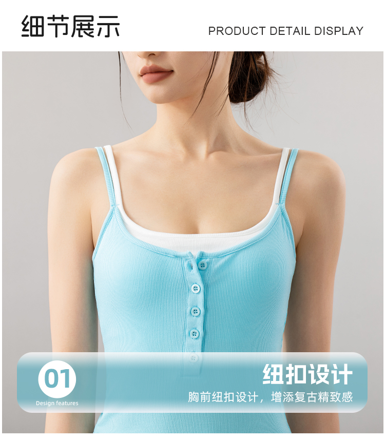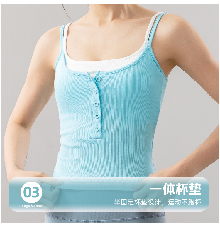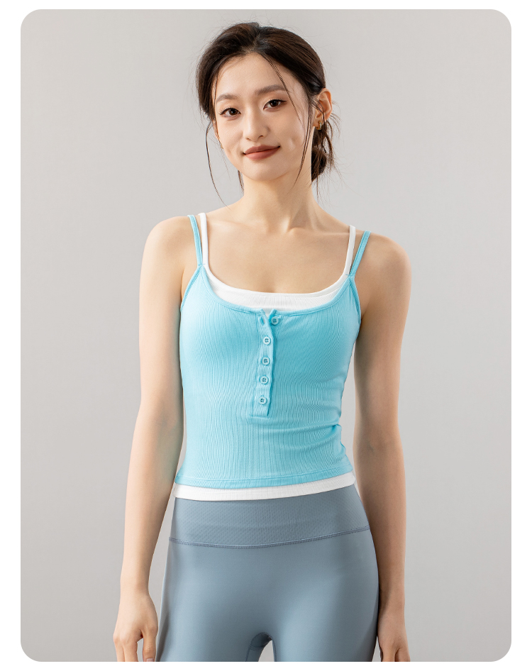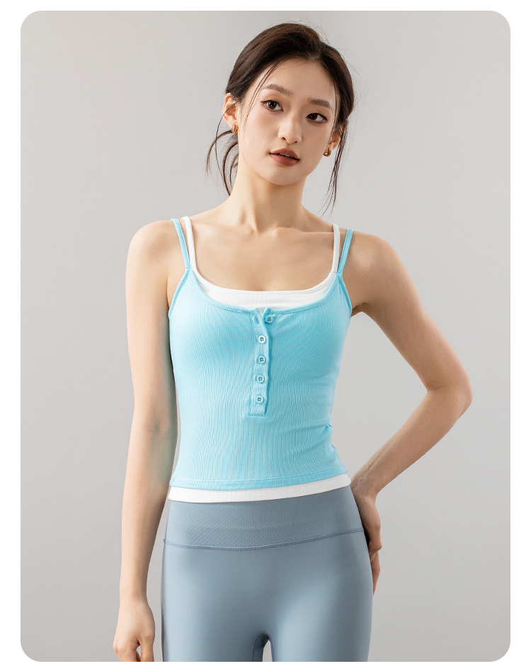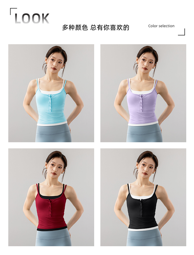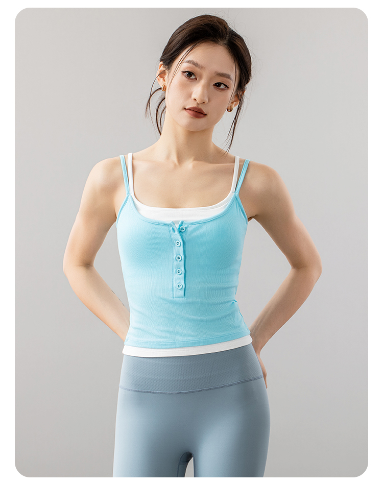 跃牌【海听系列】假两件瑜伽服上衣女 带胸垫文胸一体拼色打底吊带背心XC85