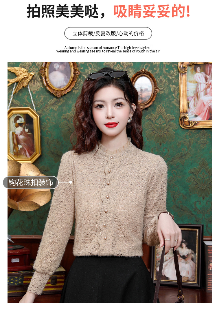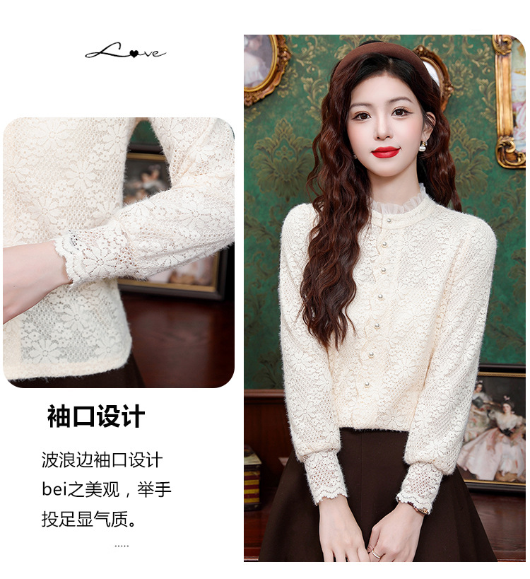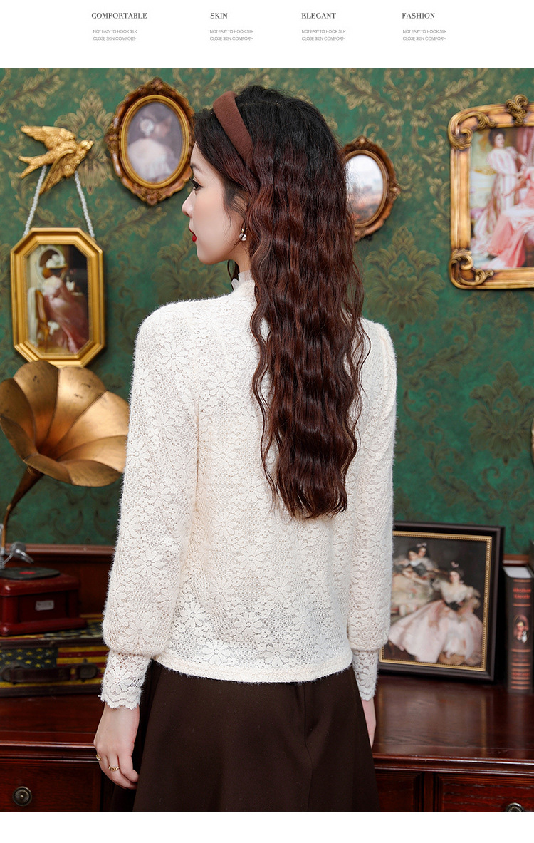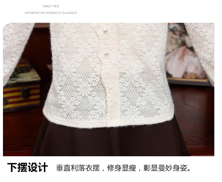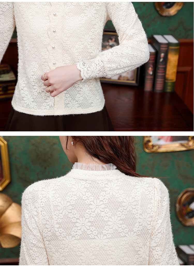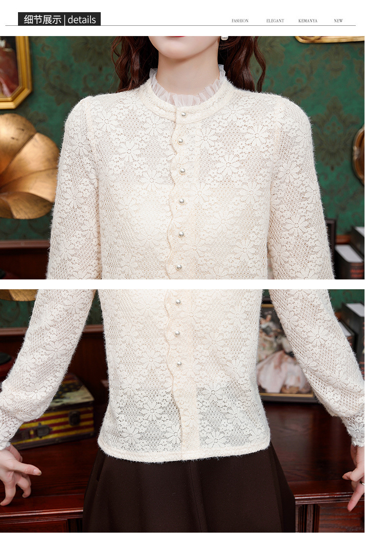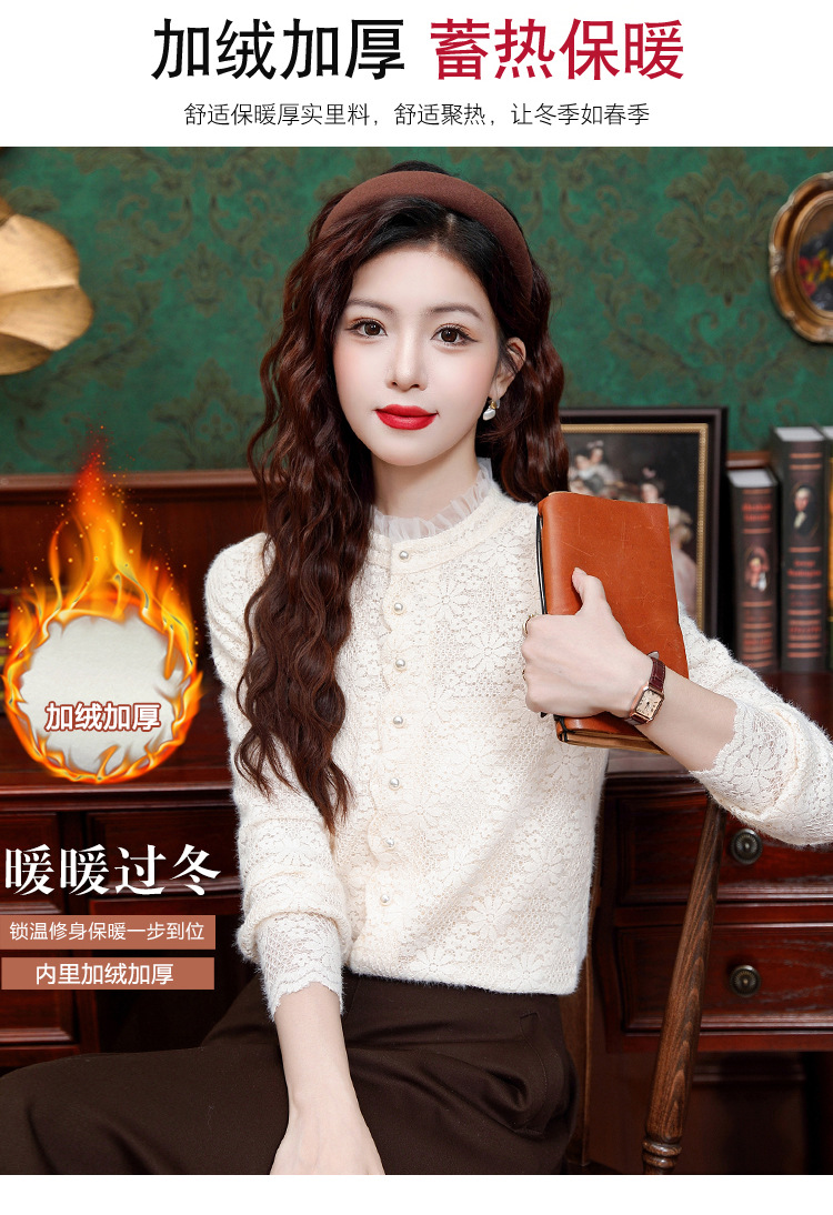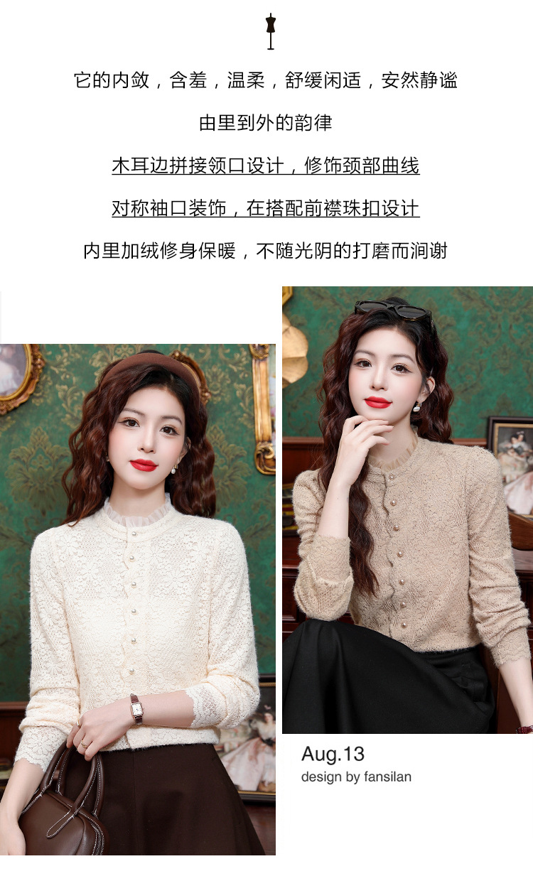 KQL 323H958木耳领时尚加厚磨毛蕾丝上衣