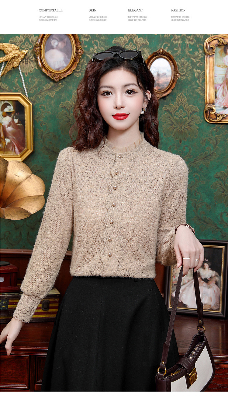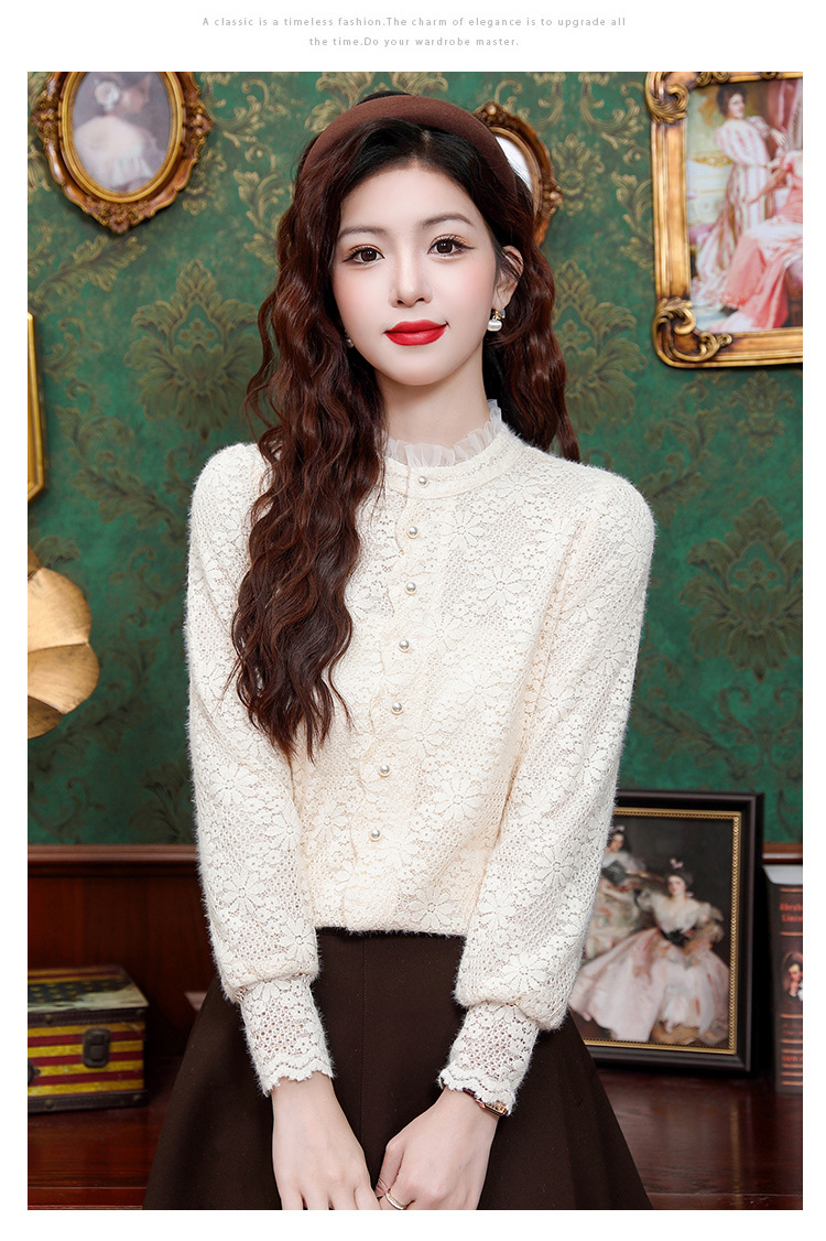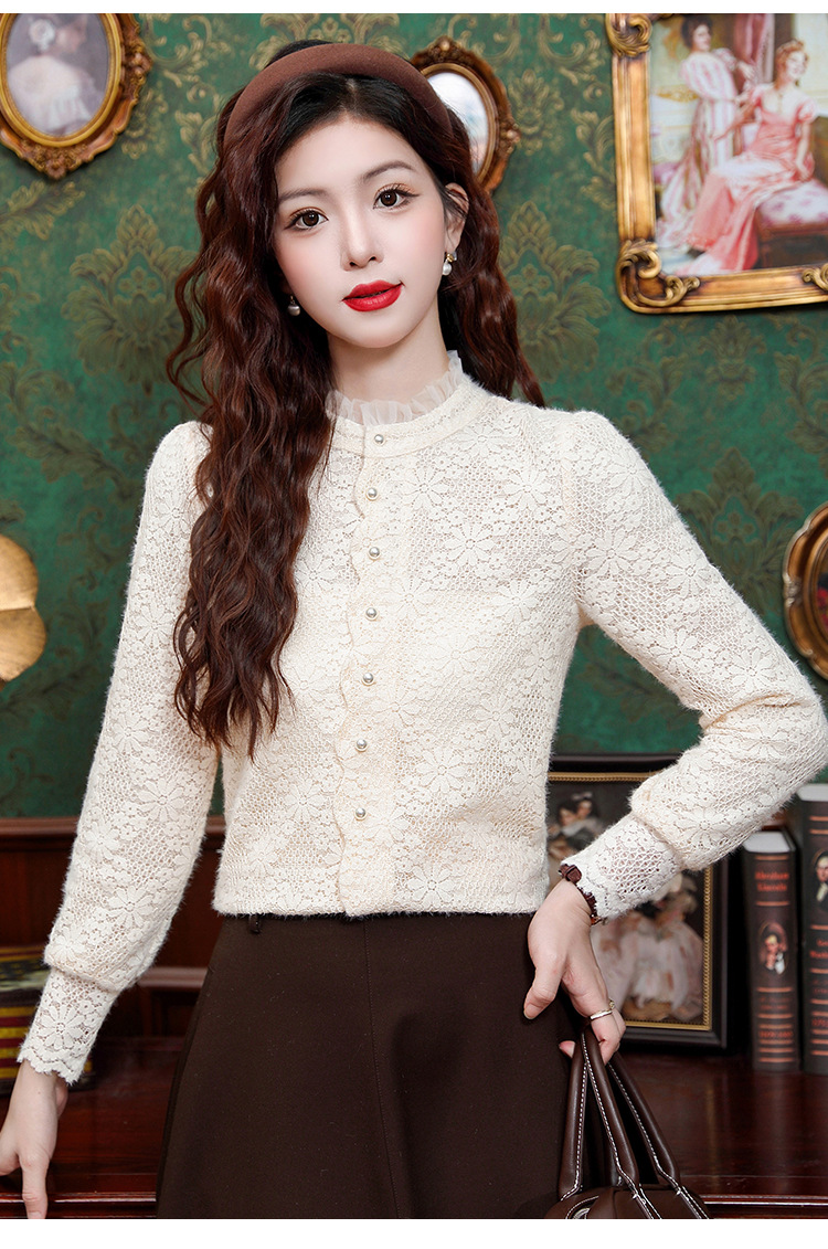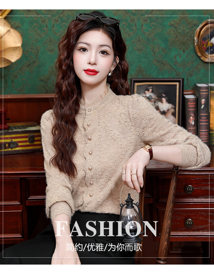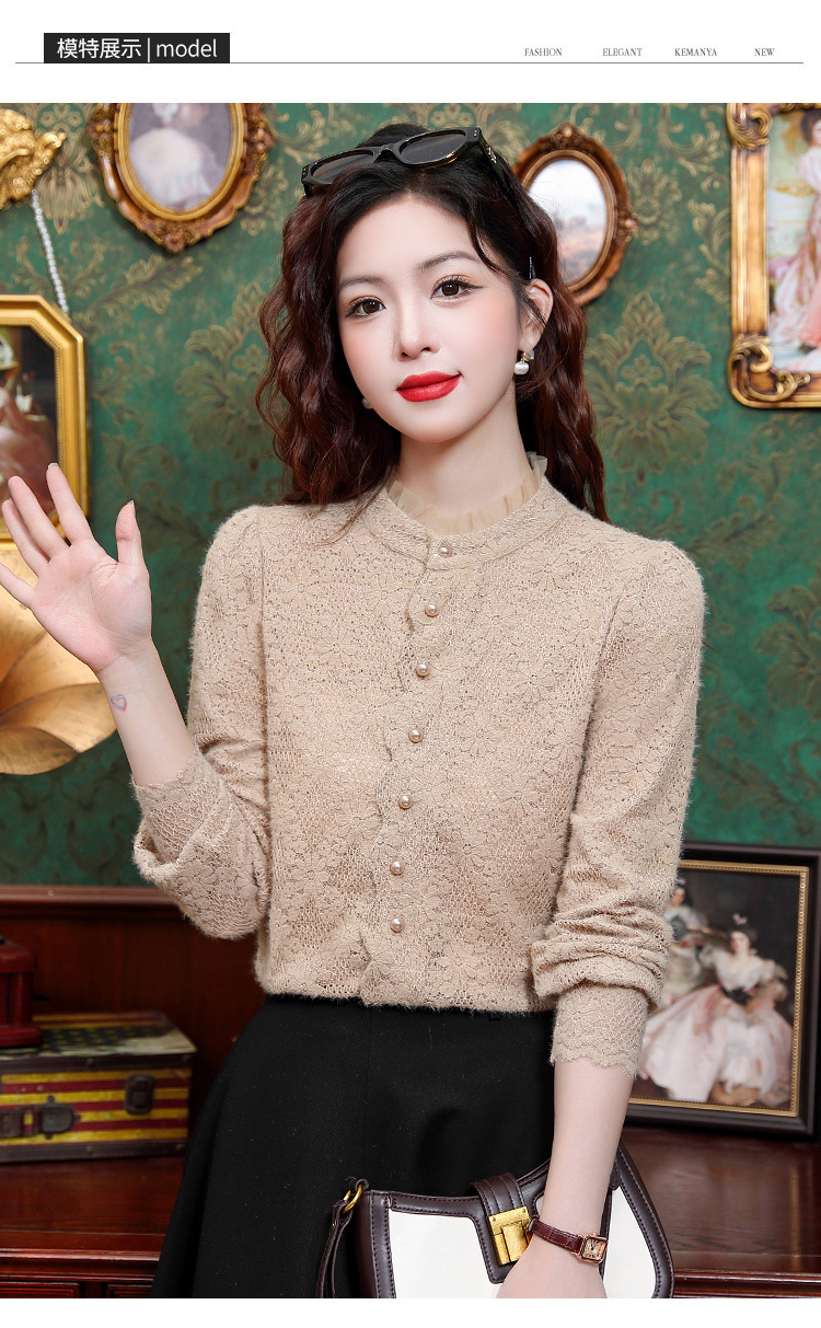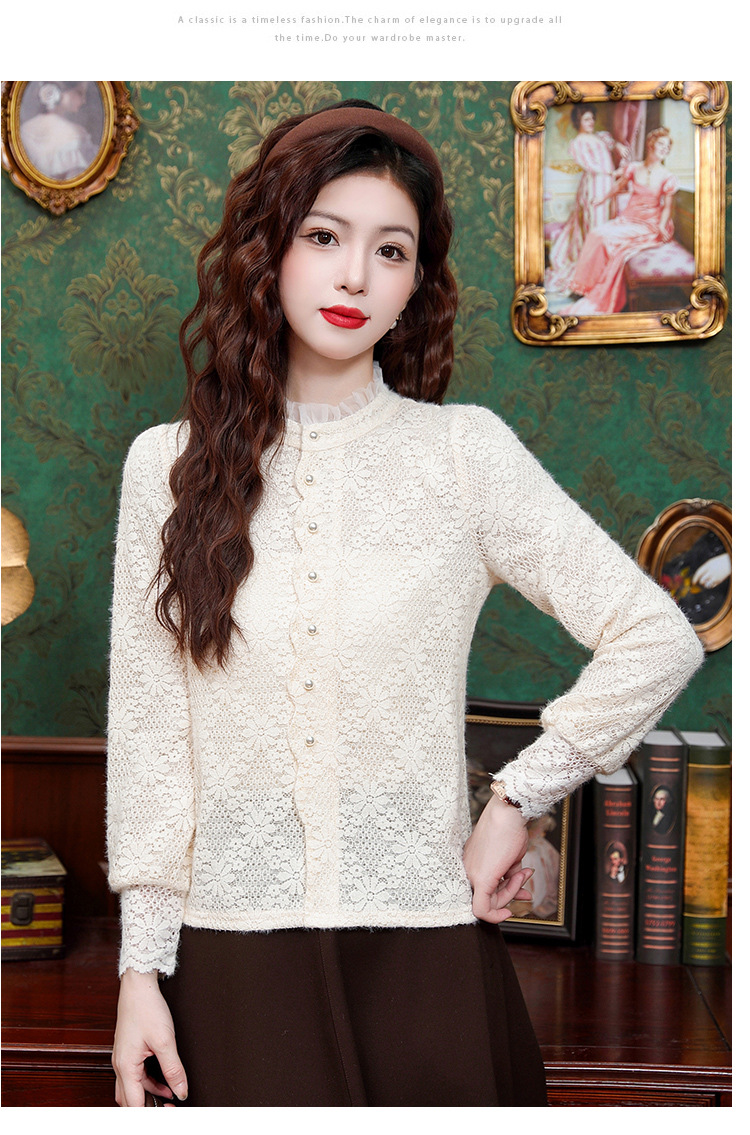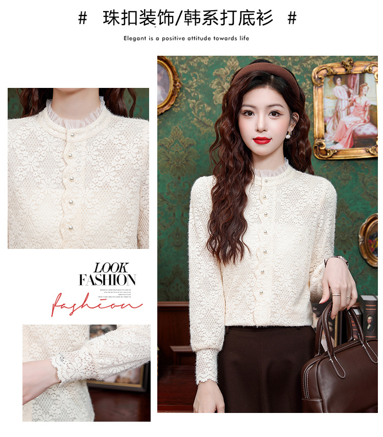 KQL 323H958木耳领时尚加厚磨毛蕾丝上衣