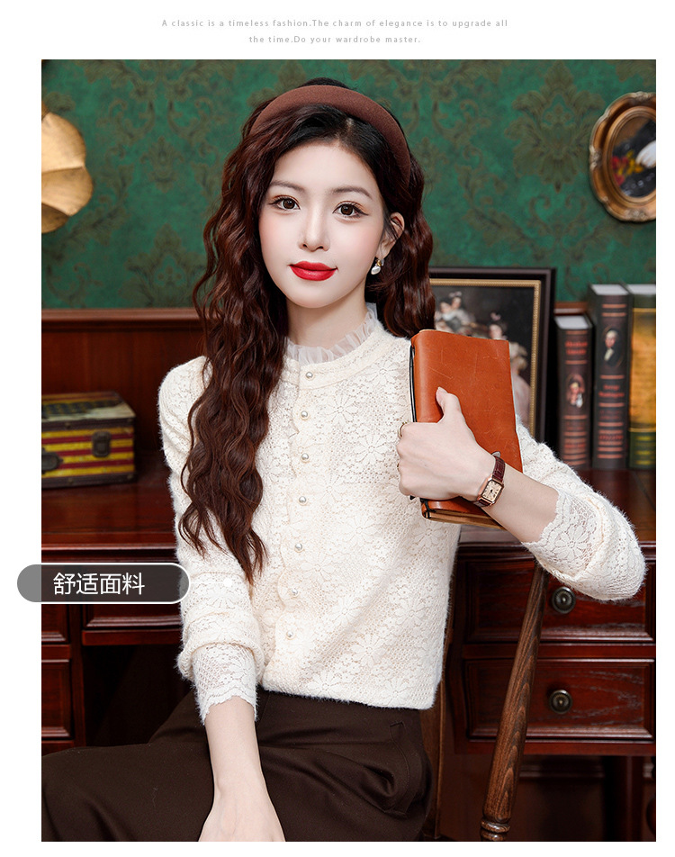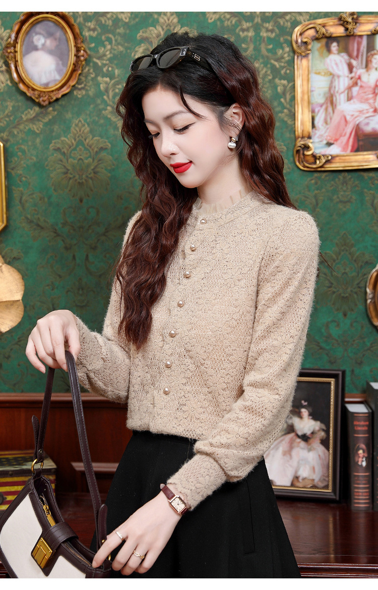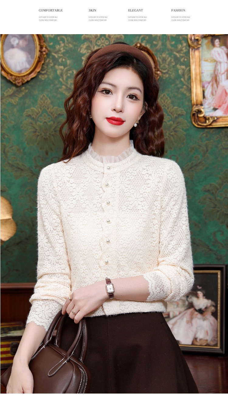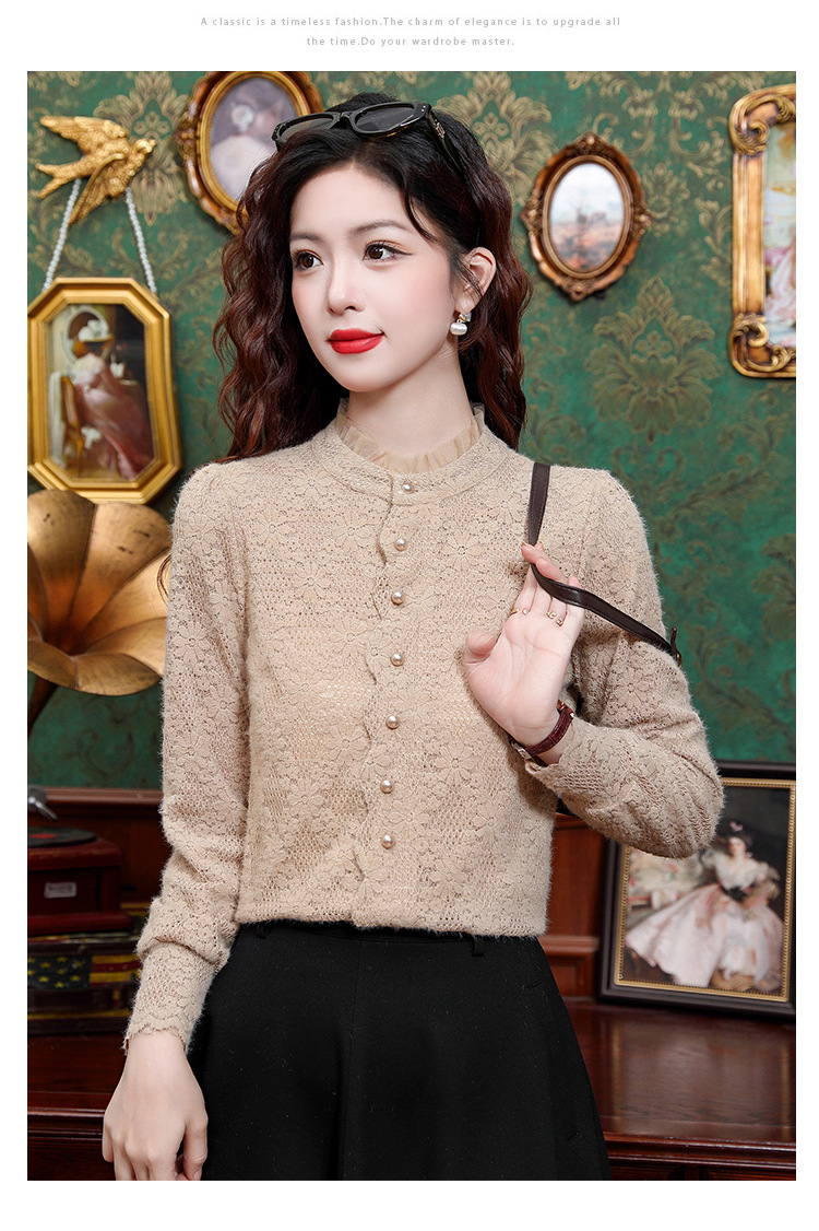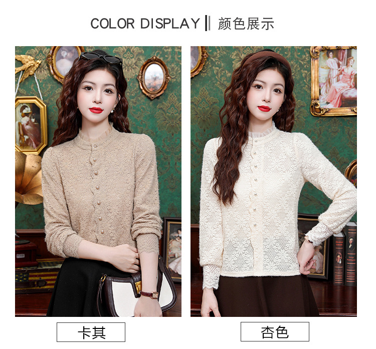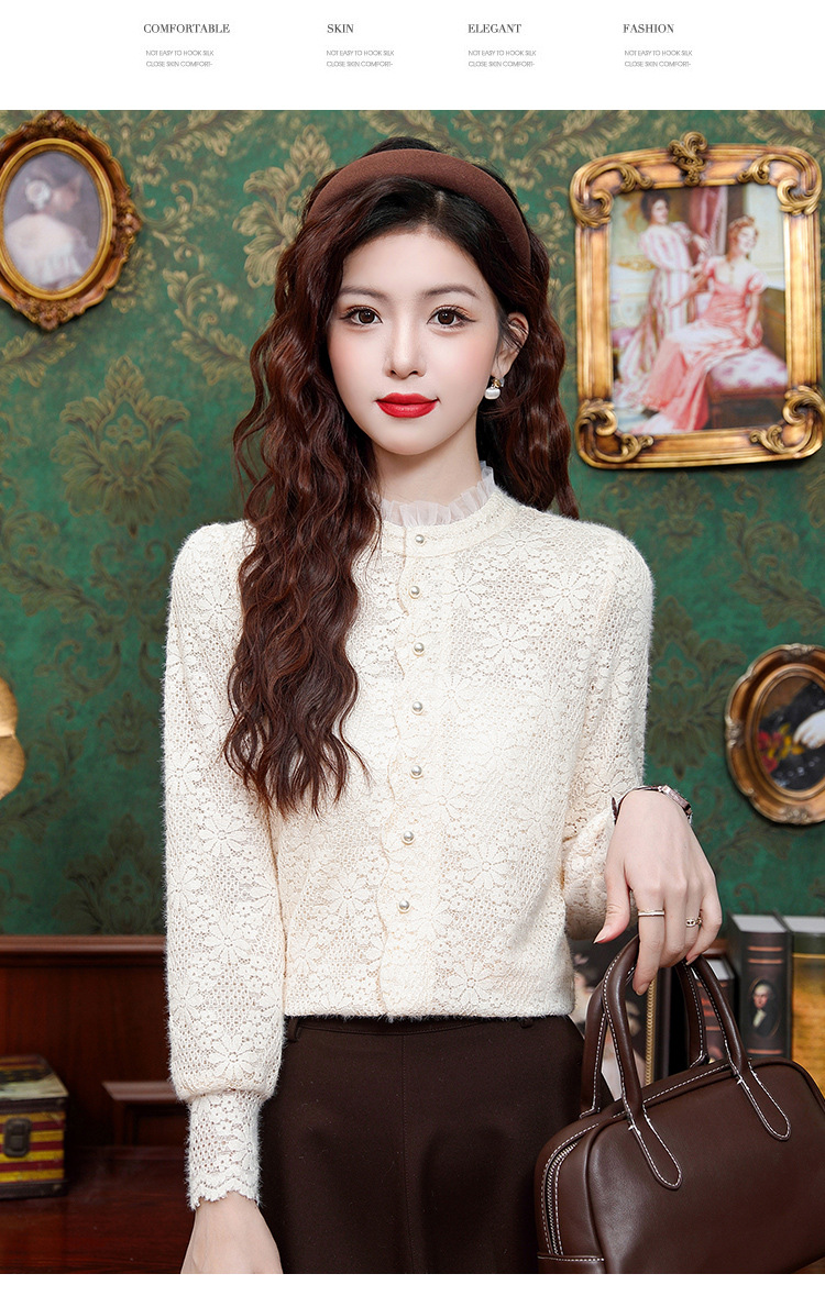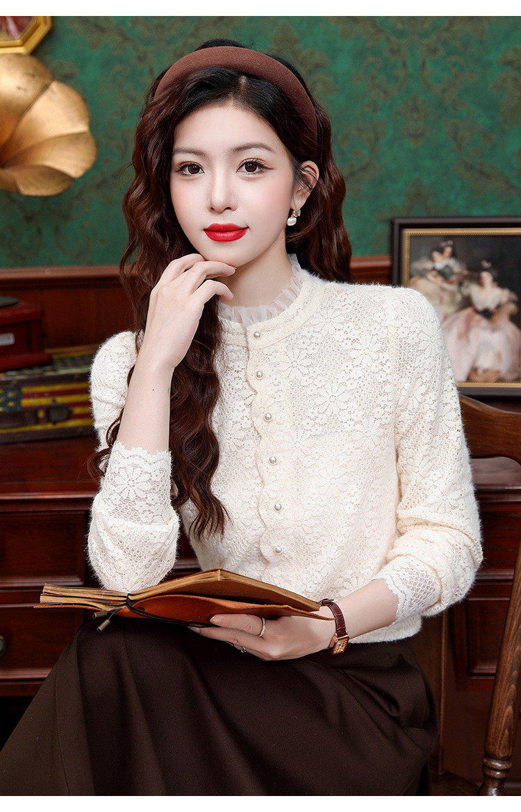 KQL 323H958木耳领时尚加厚磨毛蕾丝上衣