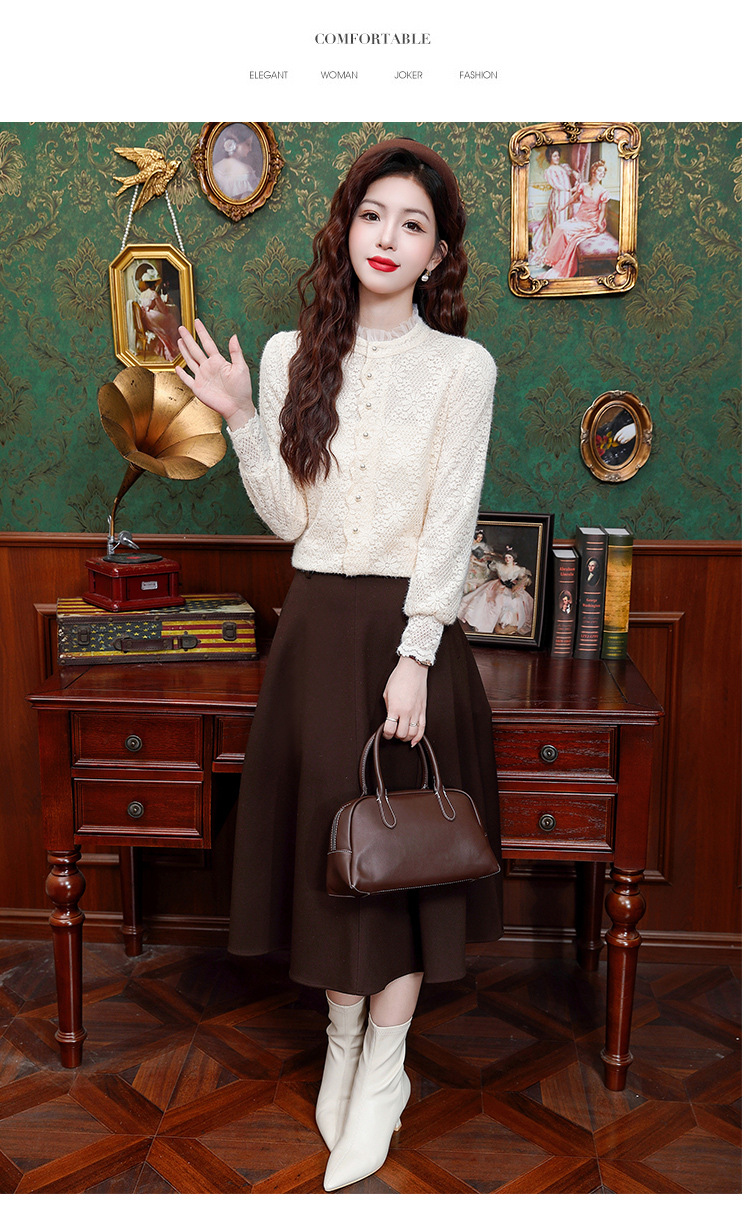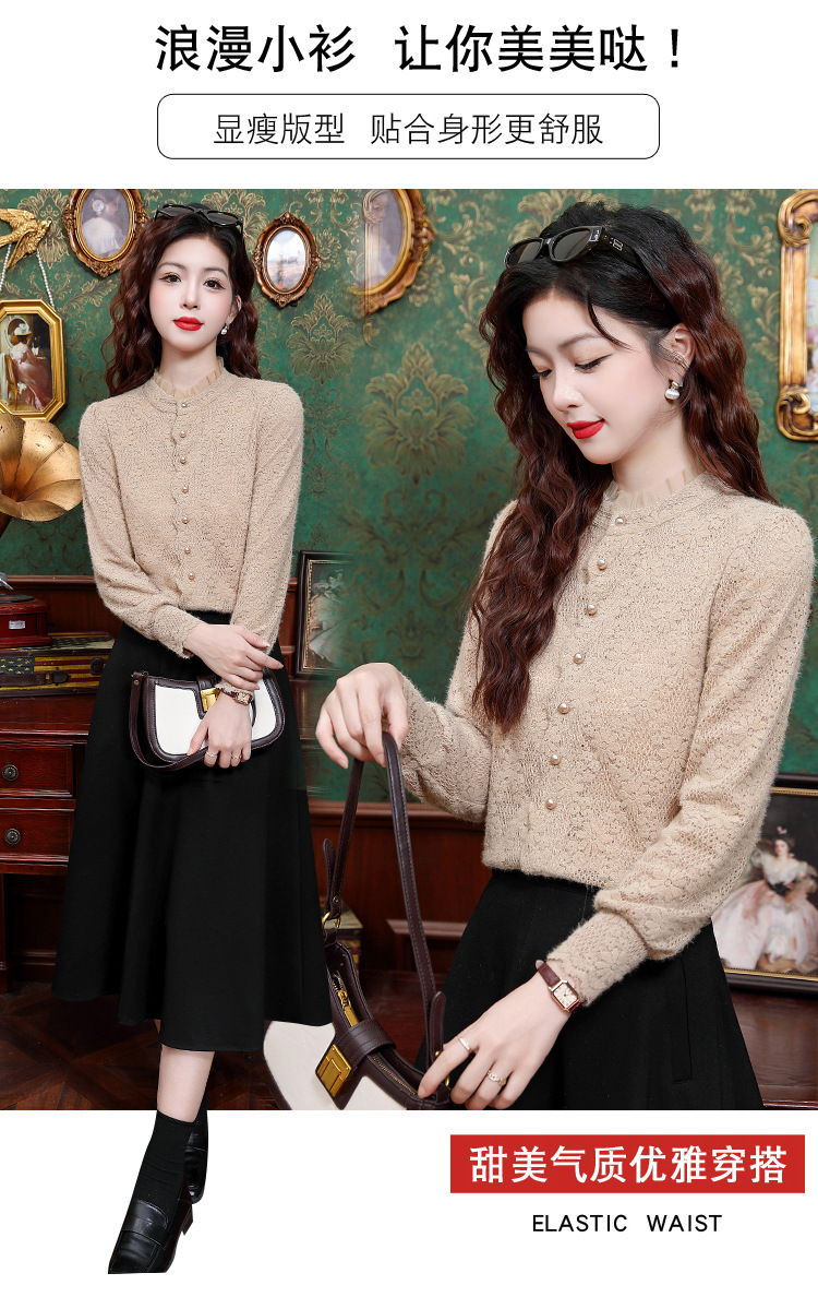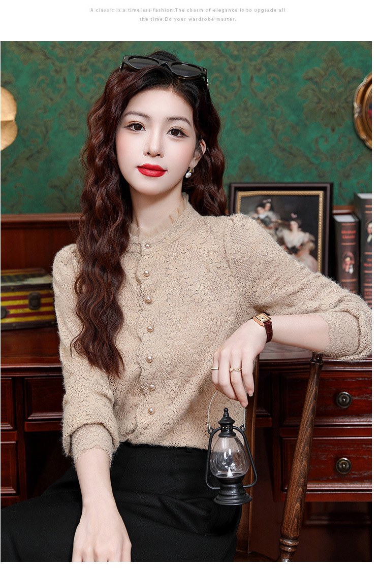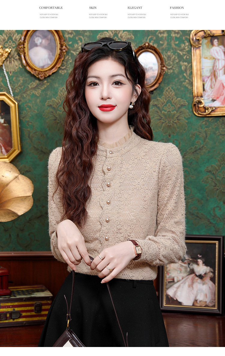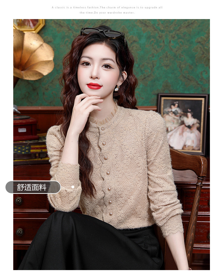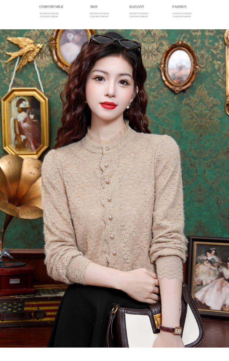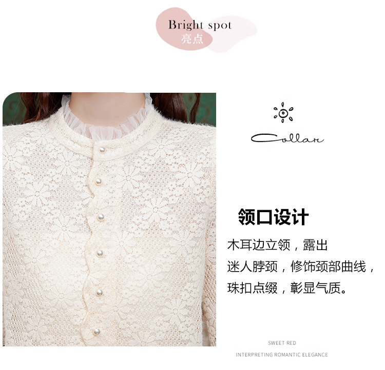 KQL 323H958木耳领时尚加厚磨毛蕾丝上衣