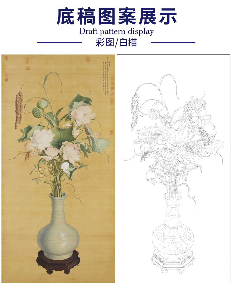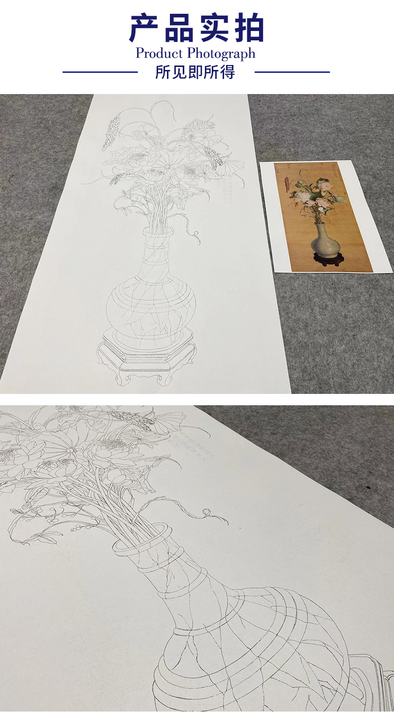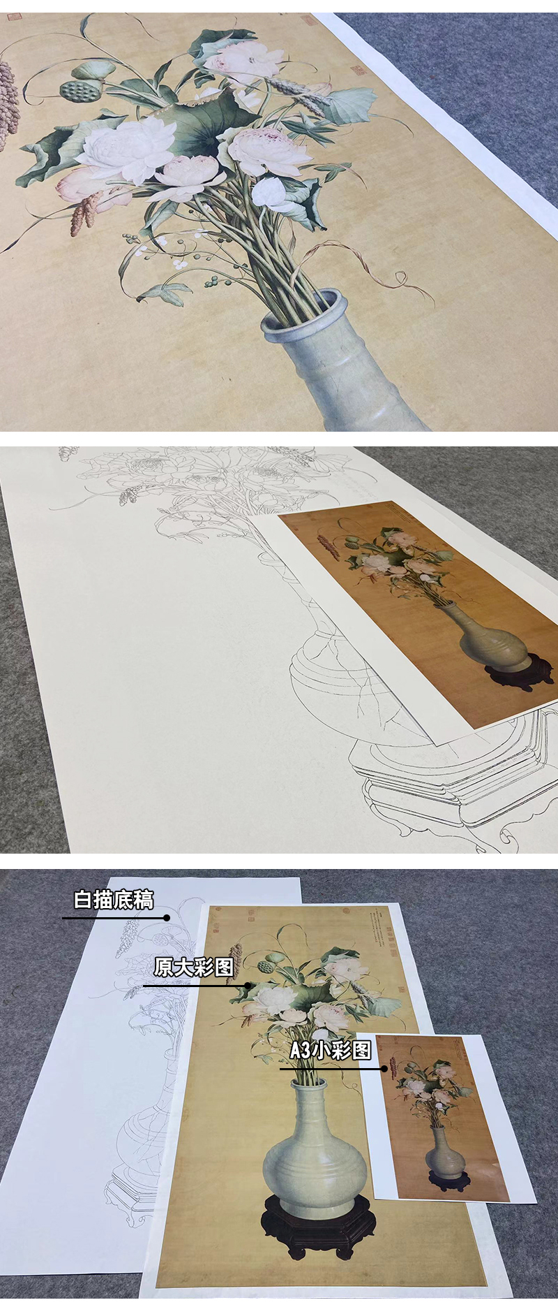 【大彩图】郎世宁工笔画白描底稿《聚瑞图》花瓶临摹勾线高清打印稿LS09