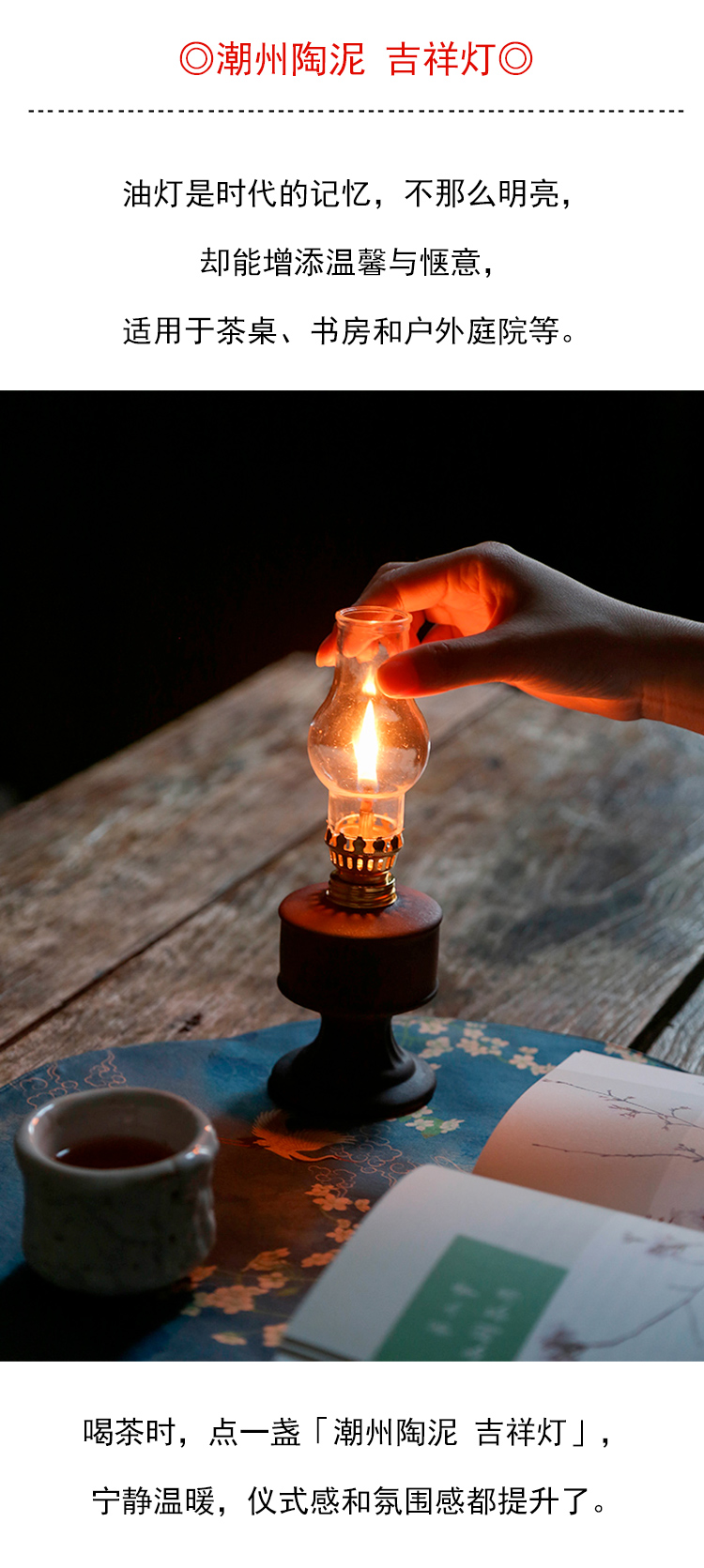 茶香记 潮州陶泥 吉祥灯 煤油灯 装饰摆件 分体设计 复古典雅 氛围感