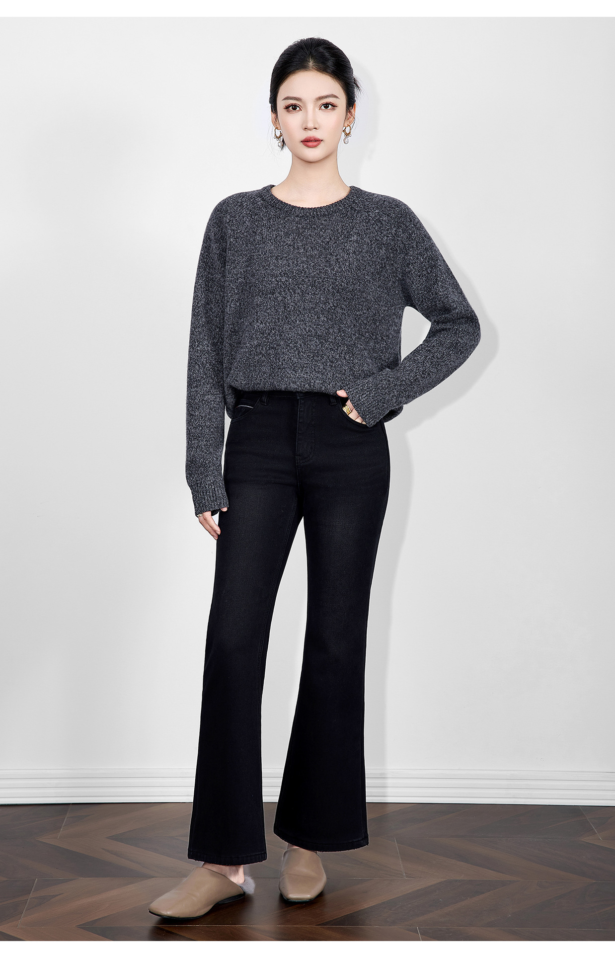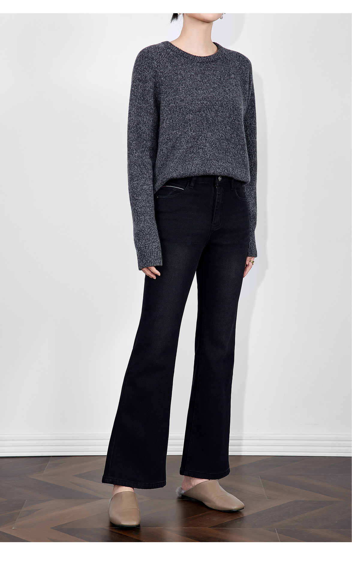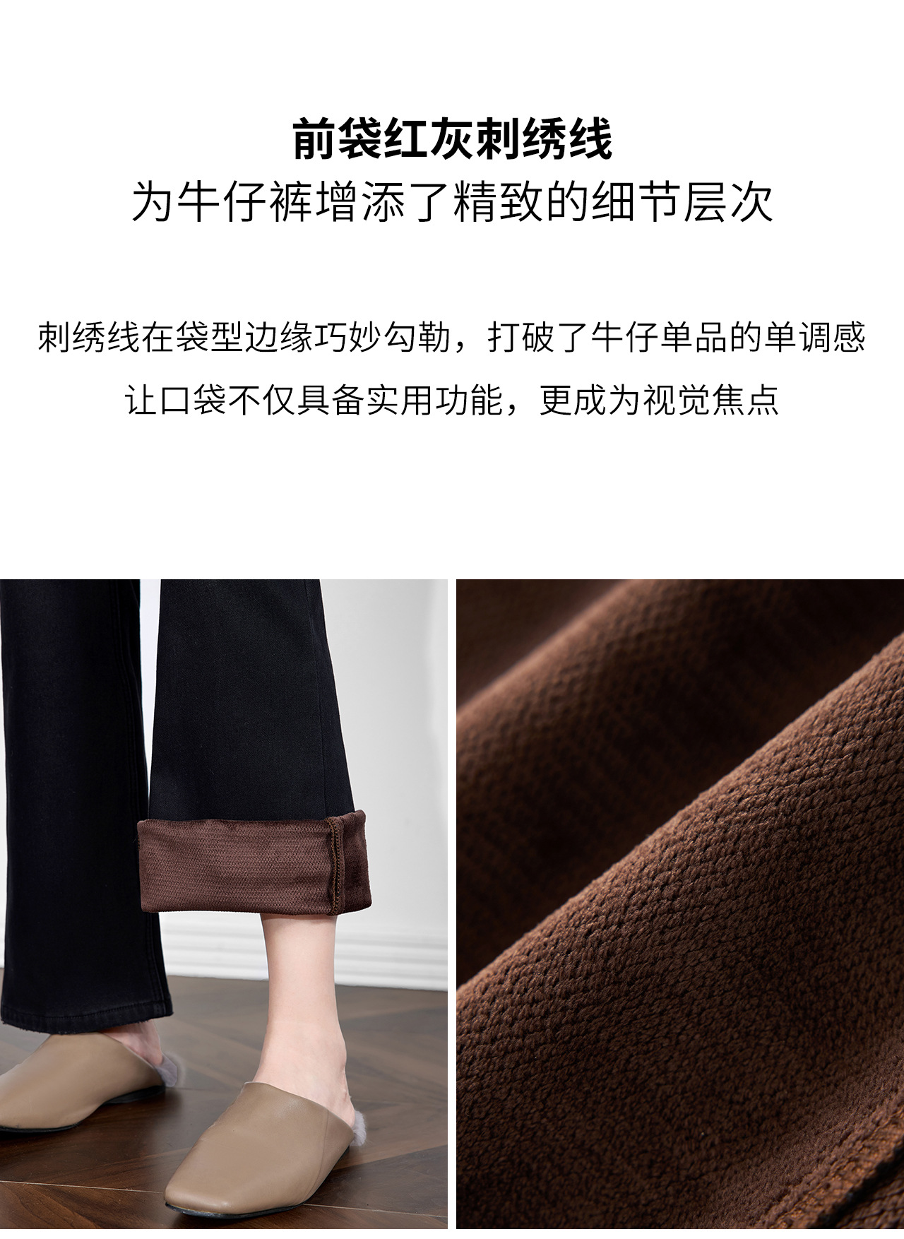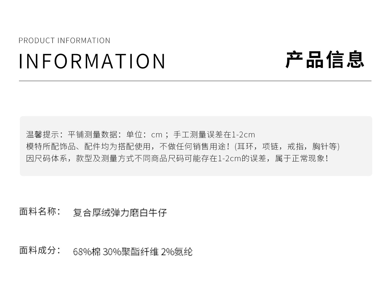 「高货wl」全新升级【铂金会员247/天猫329/差价82】(01214)洛诗琳高腰复合厚绒磨白牛仔裤2025冬季新款显瘦微喇女