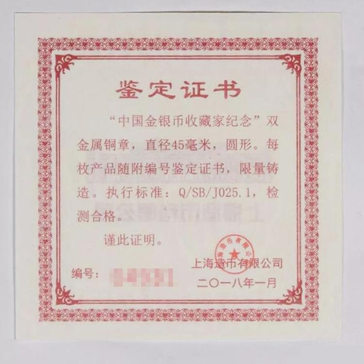 产品附赠“中国金银币收藏家纪念”双金属熊猫铜章一枚,由朱熙华设计,上海造币有限公司铸造,直径45毫米,精制工艺,与该书封面上的2017年熊猫金币发行35周年双金属币是真正意义上的“币章同源”