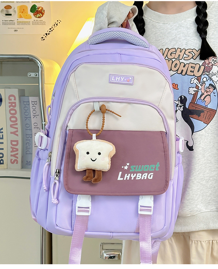 【简约时尚款❗️上学轻松背】新款透气减负护脊初中书包女生可爱三到六年级大容量糖果色双肩包。jc