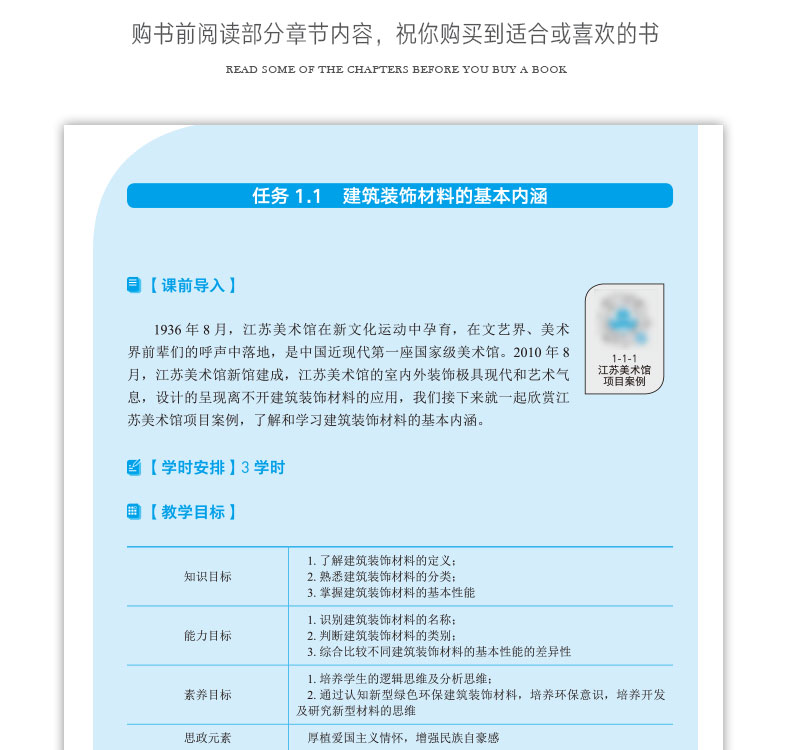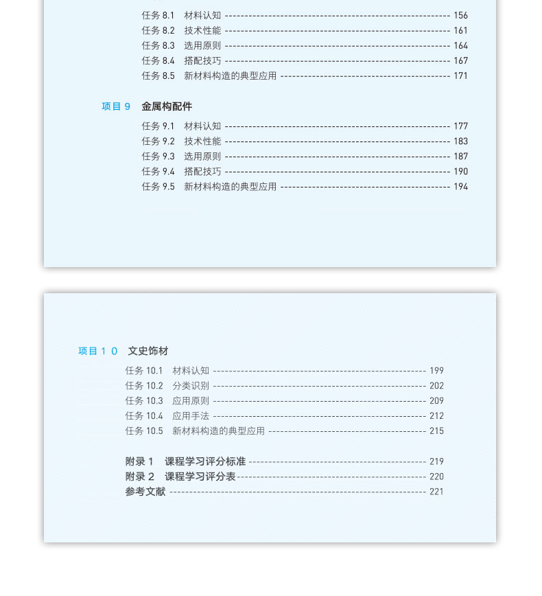 本教材主要面对建筑室内装饰设计、环境艺术设计等高职院校及相关设计企事业单位。全面介绍了常用建筑装饰材料的组成、性能特点、品种规格、技术标准、检验方法及应用。 本教材按照“十四五”国家规划教材建设,运用了新型活页式、工作手册式教材的编写手法,共11个模块,每个模块包含7个项目,每个项目下列7个子任务。本教材主要可分为四个方向:知识普及、专业调研和实训研究,评价评分。对每种材料都从历史和发展的内涵认知、选用原则、搭配原则、国际经典案例、实操运用,评价评分等几个方面进行介绍,每个模块严格按照国家现行法定法规、行业规范的基础范畴下进行编制,每个任务中的关键知识点通过二维码链接有外部视频学习数据50部之多。删去或缩减了已过时的、不常用的传统装饰材料,更新和补充了部分新型装饰材料;增加了“文史建材”、膜材等新型材料知识等,进一步突出了新型装饰材料的实际应用。通过本教材的学习,可以熟悉常用的室内装饰材料,掌握室内设计与施工各类主要装饰材料的特性特征、选择方法、成品效果、材料搭配、品牌认知、质量评判、施工工艺把控的知识与技能,对新型材料有敏锐的眼光,具备在室内设计实际项目设计中正确选择及灵活应用装饰材料的基本专业能力和善于采用新材料的创新设计能力,具有对材料市场的产品熟悉、采购选择的社会能力。