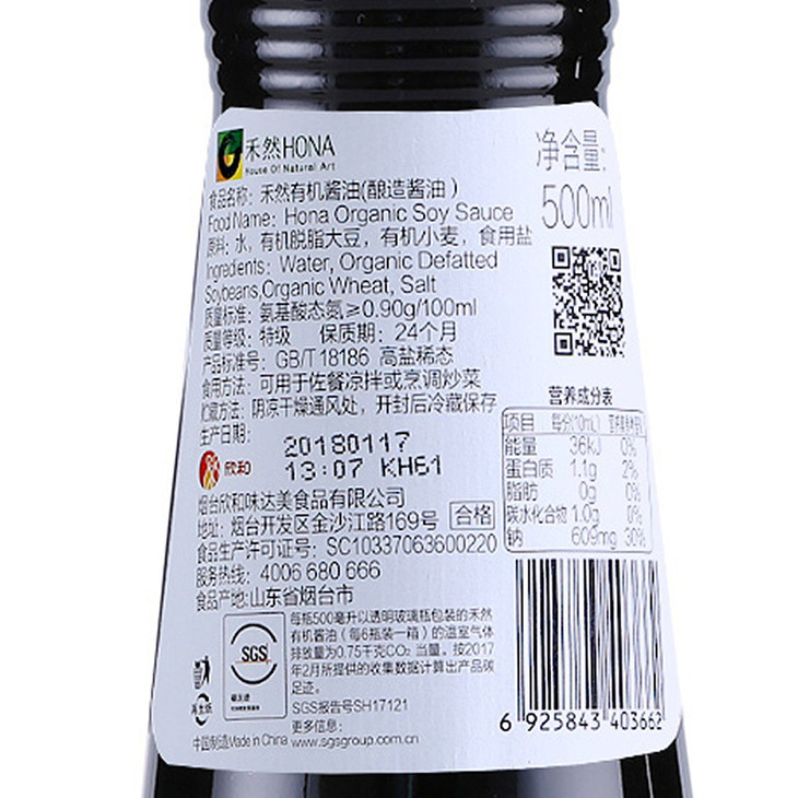 有机酱油 Hona Organic soy sauce 品牌:欣和 规格:遵循自然五谷酱油 375ml 生产厂家:济南怡和食品有限公司 氨基酸态氮含量: 遵循自然五谷酱油>=0.9g/100ml 生产方式:酿造 储存方式:避光干燥处保存 保质期:遵循自然五谷酱油:18个月 发货方式:绿手指珠海基地发货。每周日至周五,早8点前下单的食材,当日发货;超过早上八点的时间,次日发货。周六不发货。参与广东省内满300包邮活动。受天气或库存等原因影响可能偶有耽误,急单请发货前咨询客服,不接受没有提前沟通的拒收。 |