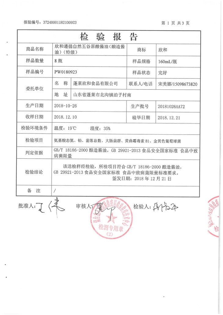 很多小伙伴都知道,氨基酸代表的是鲜味。氨基酸态氮是判断酱油好坏的其中一个指标,国标规定,高于0.8g/100ml便是特级酱油了。三款酱油的氨基酸态氮含量均在0.9以上,包括使用了杂粮的遵循自然五谷酱油,相当良心,只有时间才能赋予这样味道了。