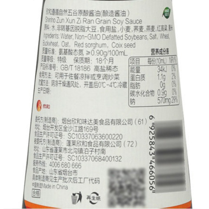 遵循自然系列虽然没有有机认证,但使用非转基因原料,遵循加工过程0添加的标准,6个月以上酿造:3、欣和遵循自然五谷酱油,除了大豆和小麦,还加入了荞麦、燕麦、红高粱、薏米,味道醇厚。这3款酱油,从原料到加工,都深得我心。