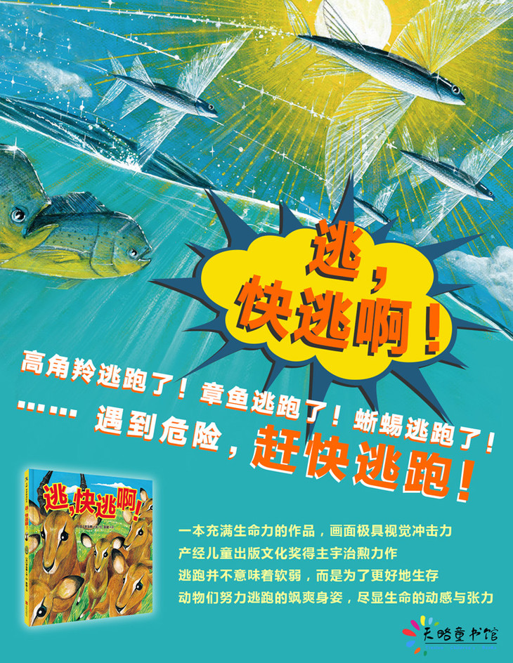 高角羚逃跑了!章鱼逃跑了!蜥蜴逃跑了!……遇到危险,赶快逃跑!一本充满生命力的作品,画面极具视觉冲击力。