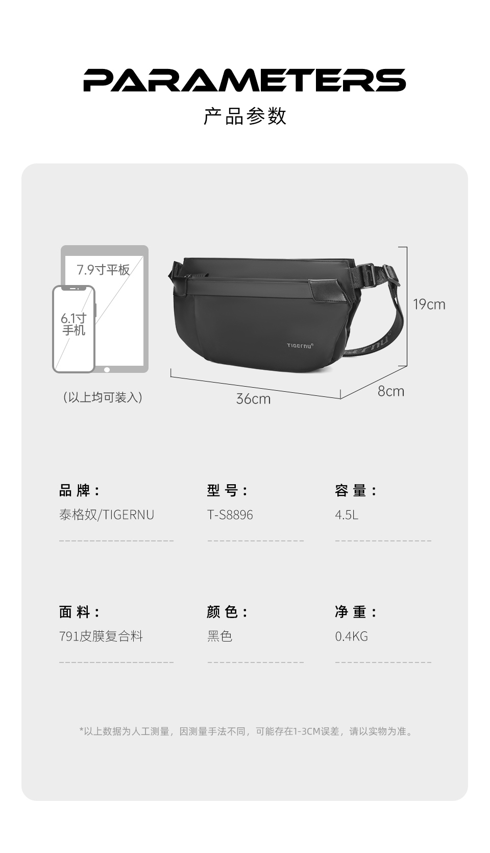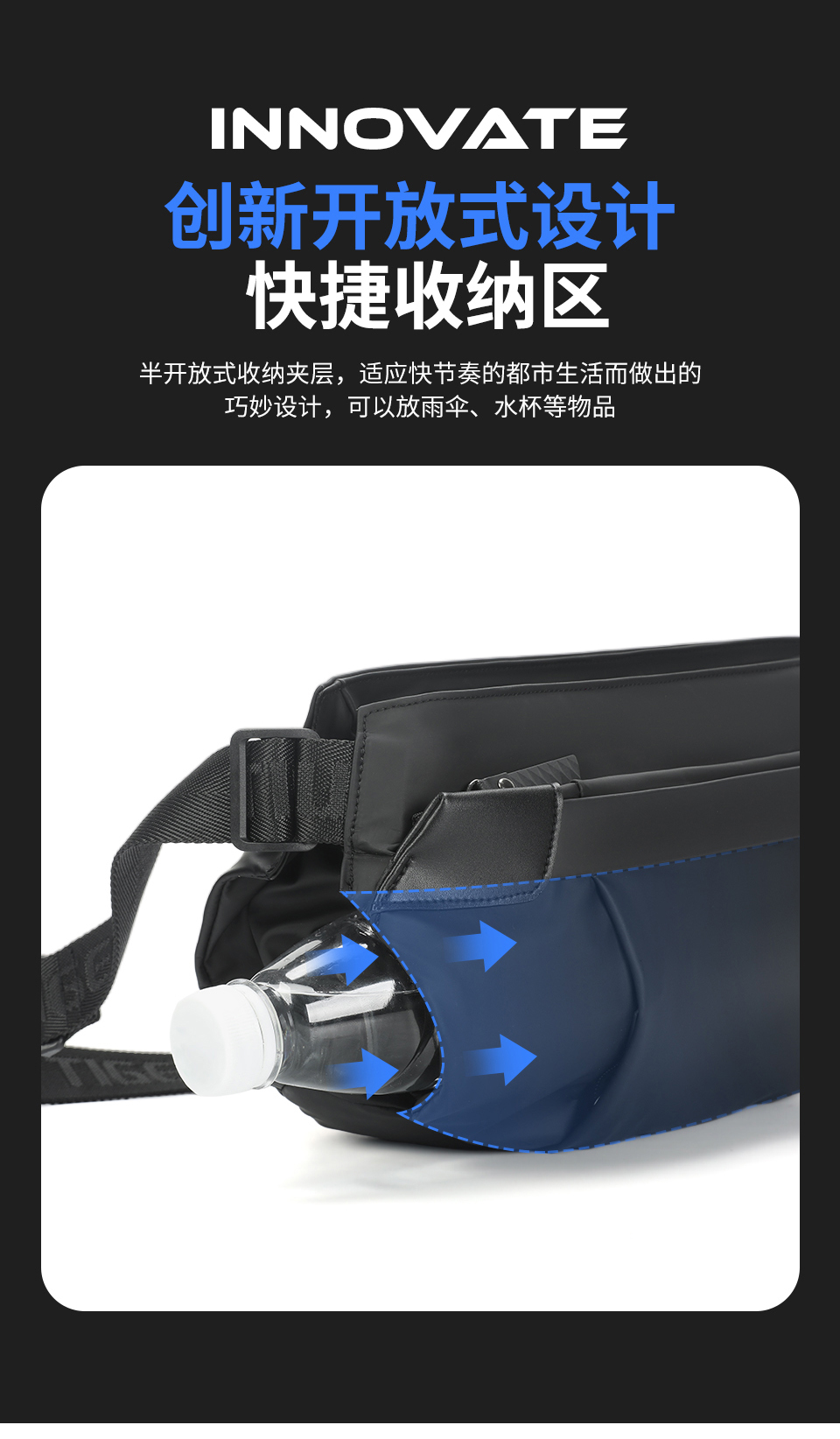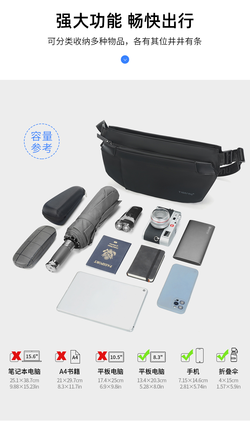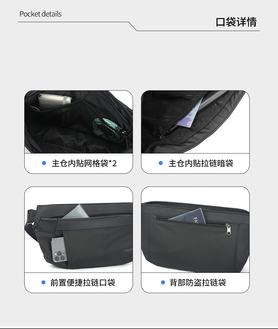 TIGERNU泰格奴单肩斜挎包 升级复合面料轻盈防泼水一擦即净耐老化 磁力吸扣 大容量 多空间