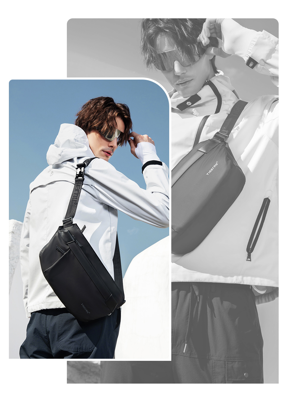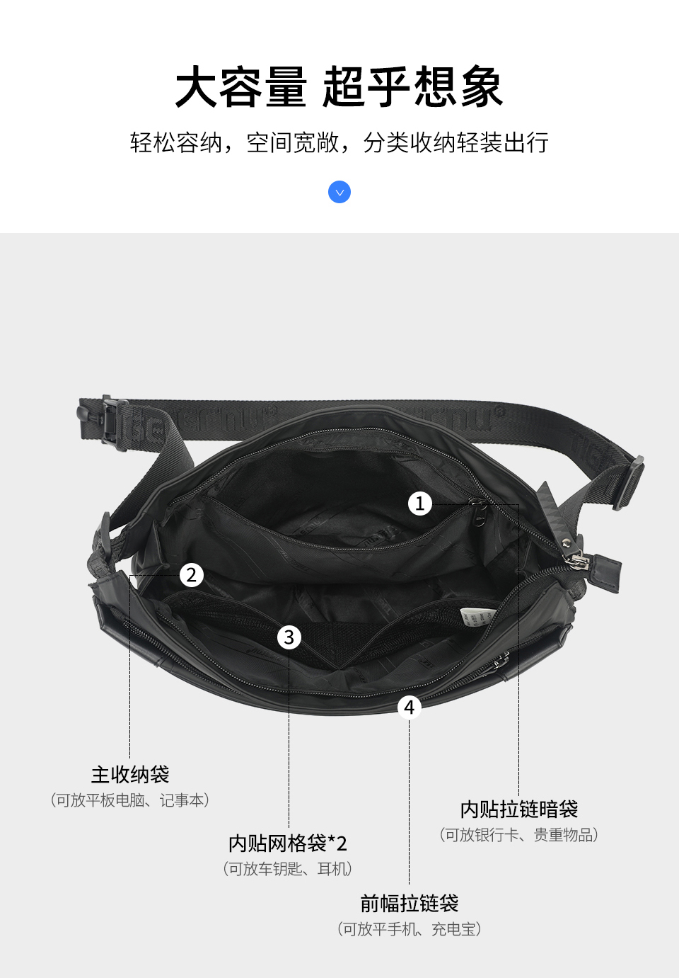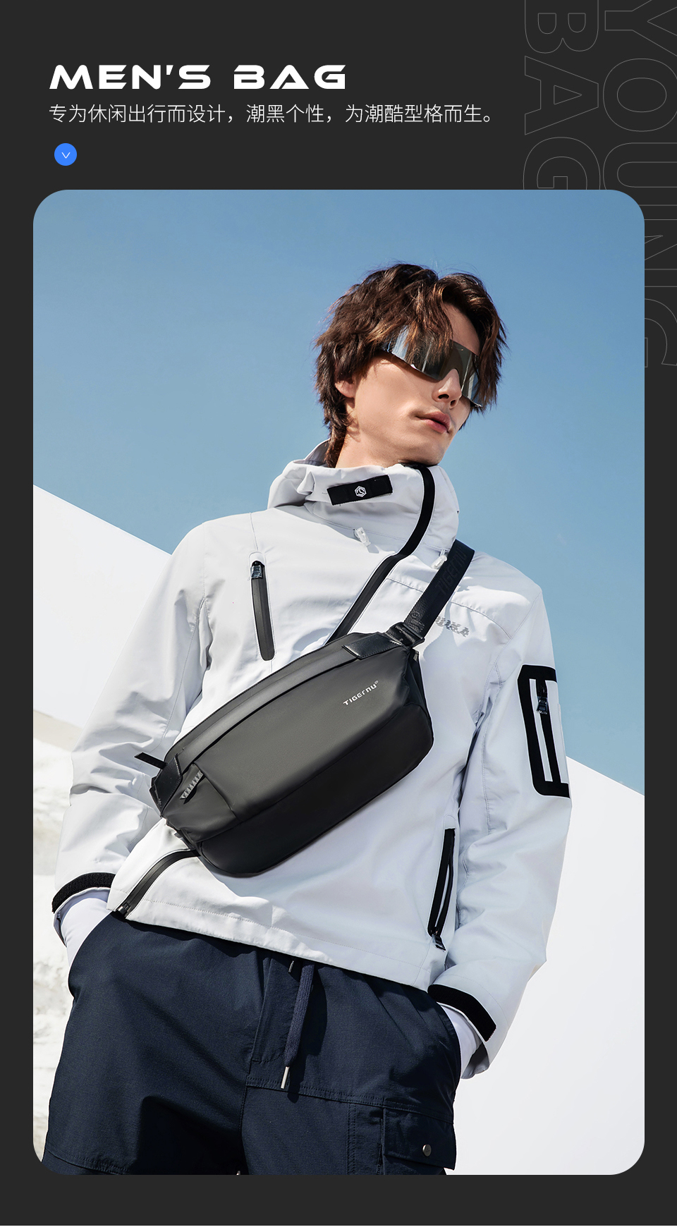 TIGERNU泰格奴单肩斜挎包 升级复合面料轻盈防泼水一擦即净耐老化 磁力吸扣 大容量 多空间