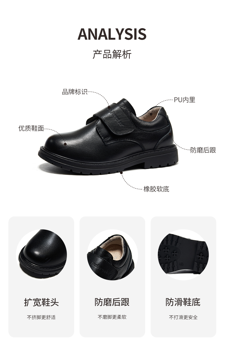 英伦风皮鞋 | 暇步士HP3394 牛皮鞋面 简约好搭配 魔术贴设计 方便穿脱 秋季英伦风皮鞋 守护宝贝每一步的优雅!
