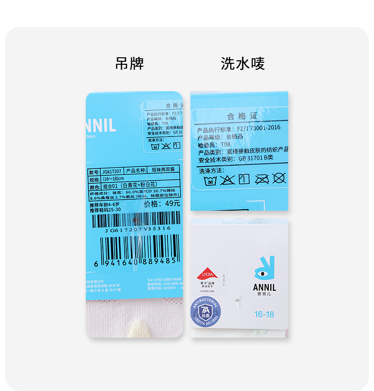 【专区任选2件49元】【实体店同款】女童短袜两双装春季新款安奈儿童装JG617207