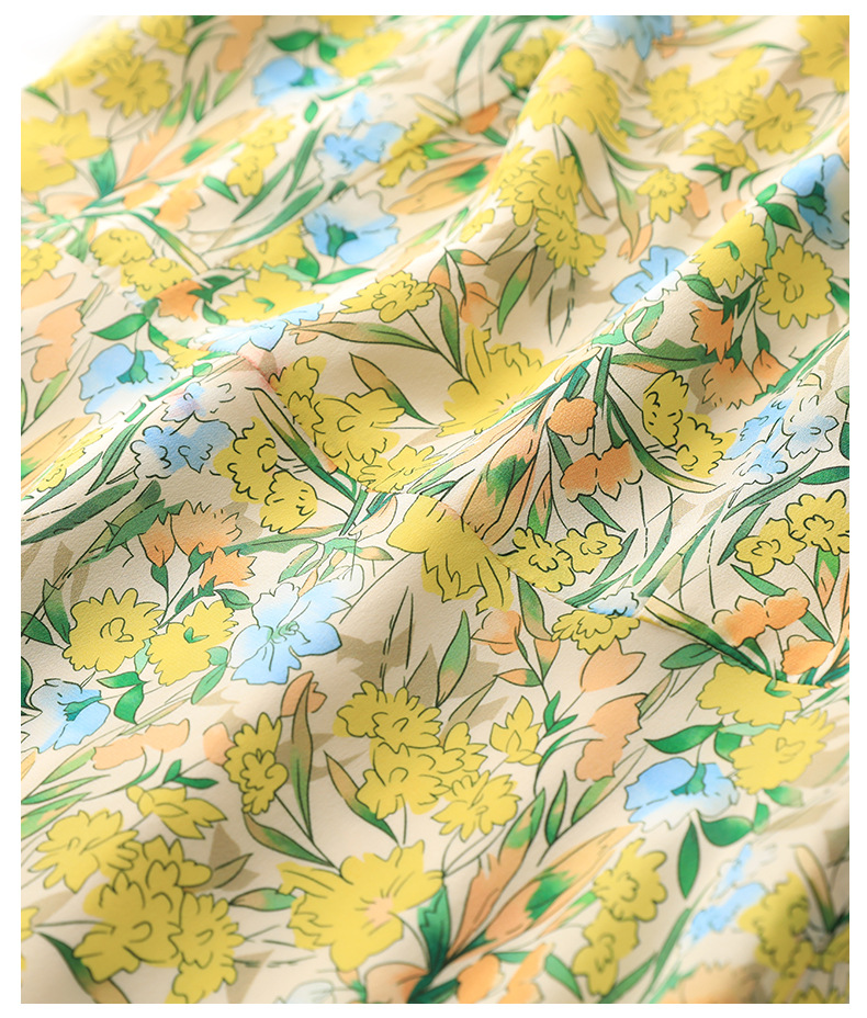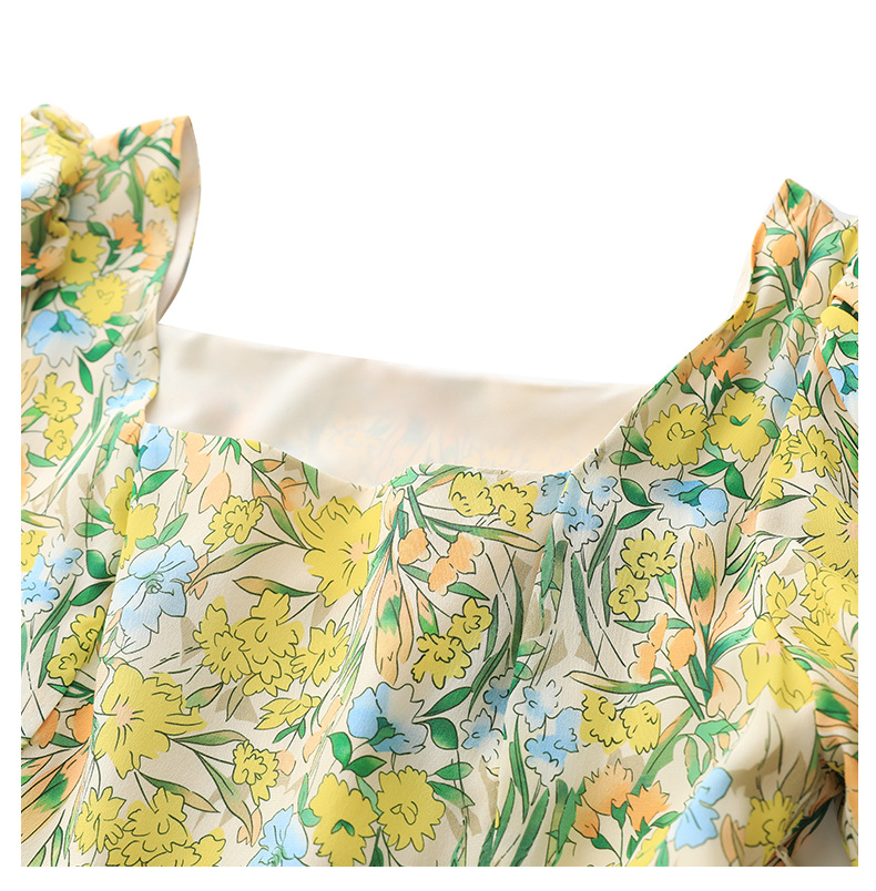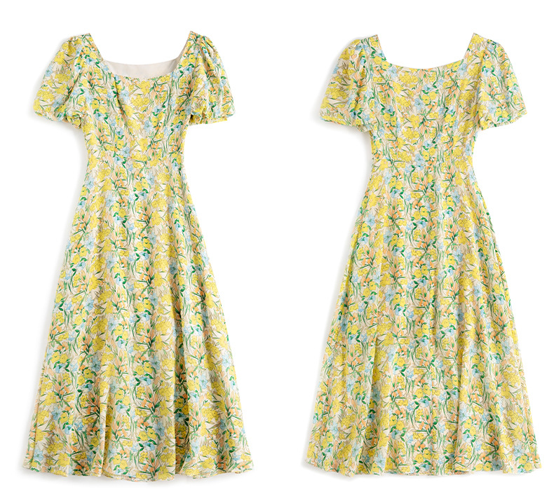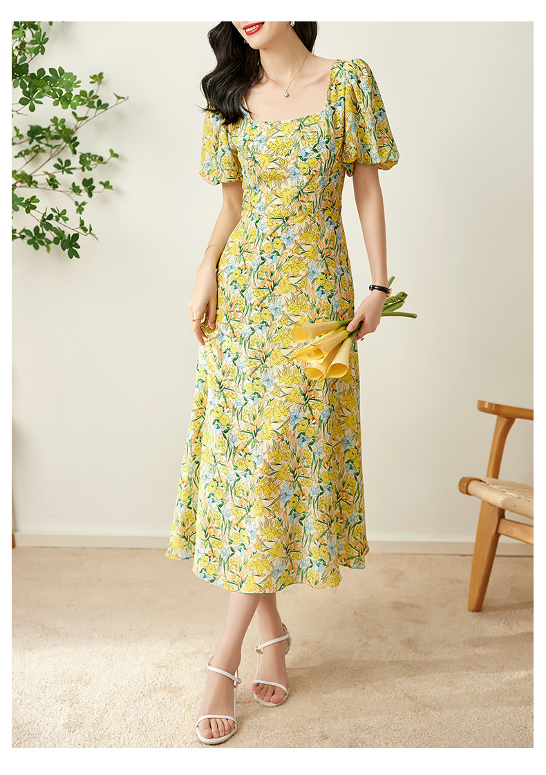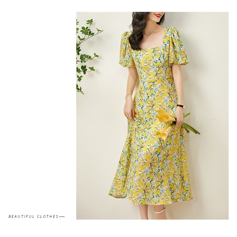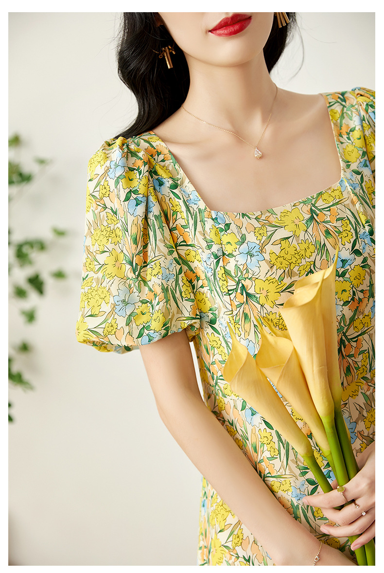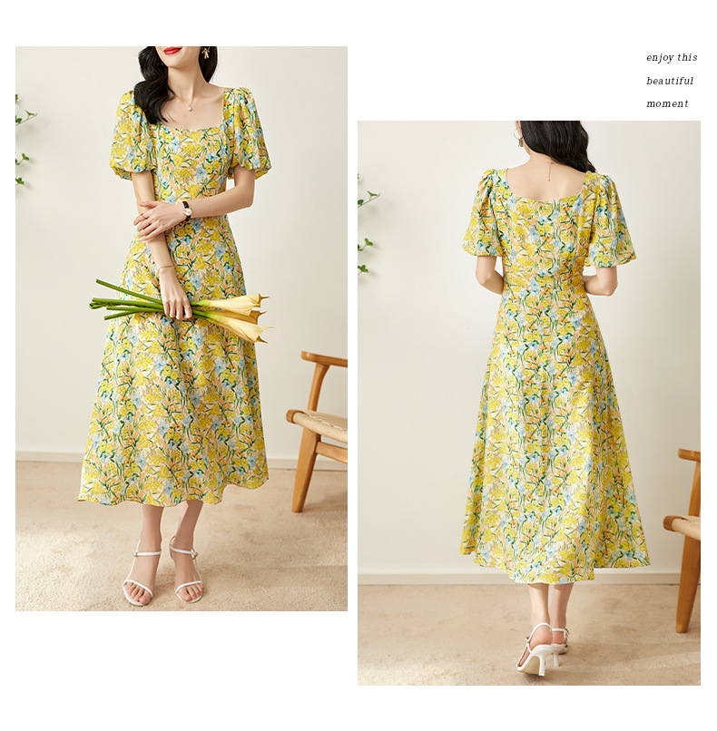 南油桑蚕丝双绉法式,方领显白印花长裙WLZD-2216102
