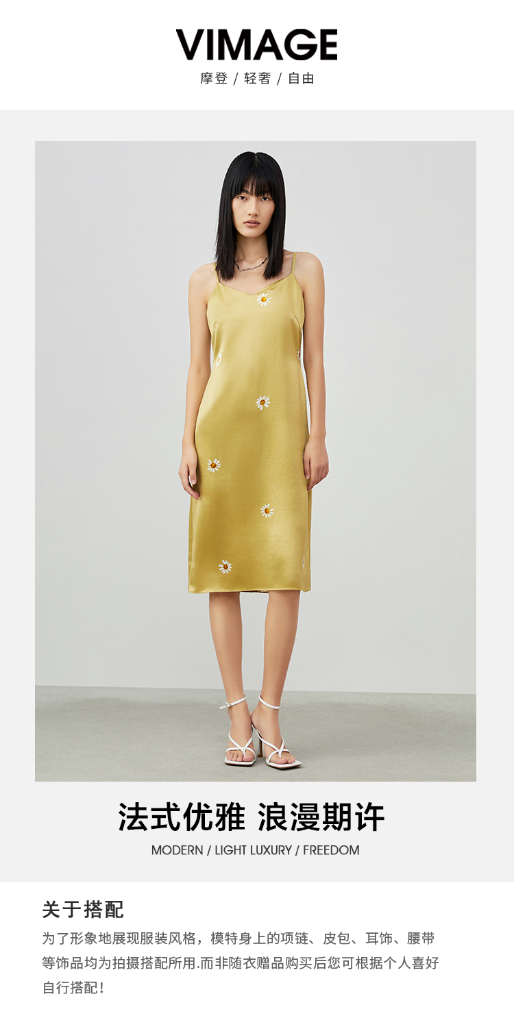 VIMAGE纬漫纪春夏季新款优雅气质吊带露背显瘦印花长裙连衣裙女V1707355