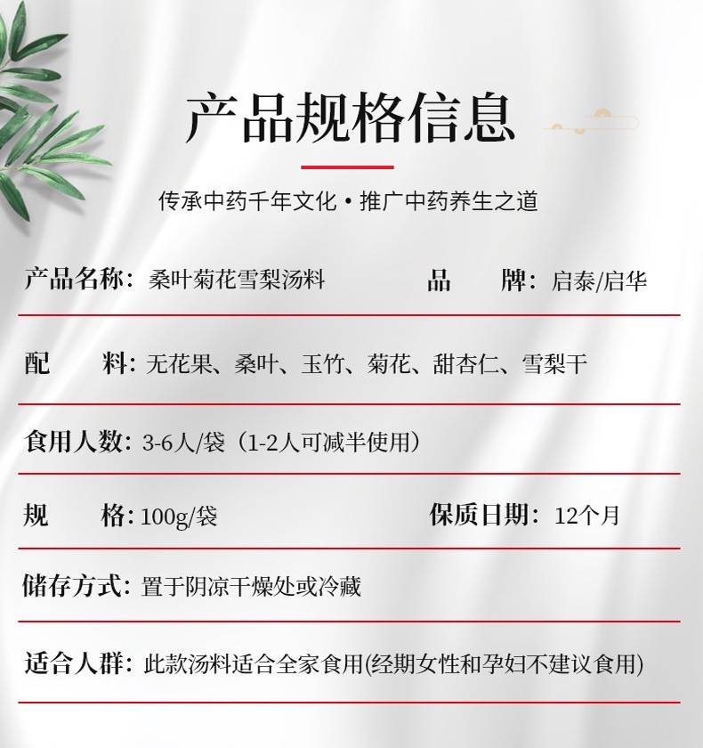 香港啟泰桑叶菊花雪梨汤料100g广东煲汤材料炖鸡汤料包熬汤食材 (3-6人食用)