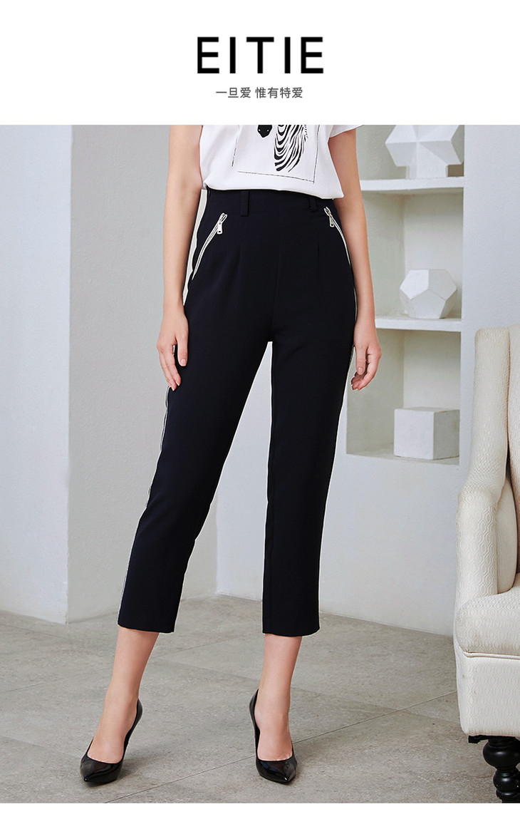 EITIE爱特爱秋季新款通勤职业百搭显瘦修身九分裤铅笔裤女裤6005726