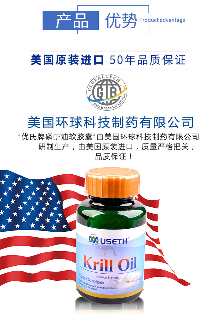 优氏牌南极磷虾膳食营养食品(磷虾油软胶囊) 60粒/瓶