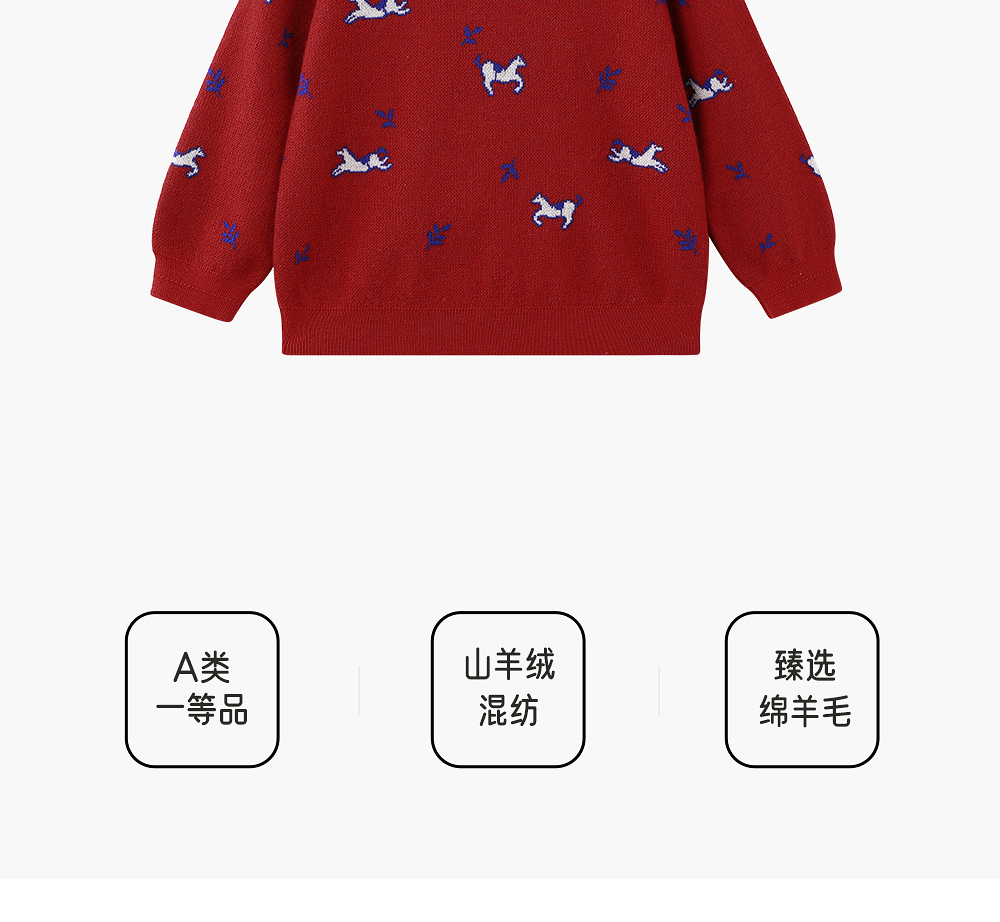 【高定系列】英氏儿童毛衣秋冬男女童童羊毛针织衫新年装羊绒毛衣