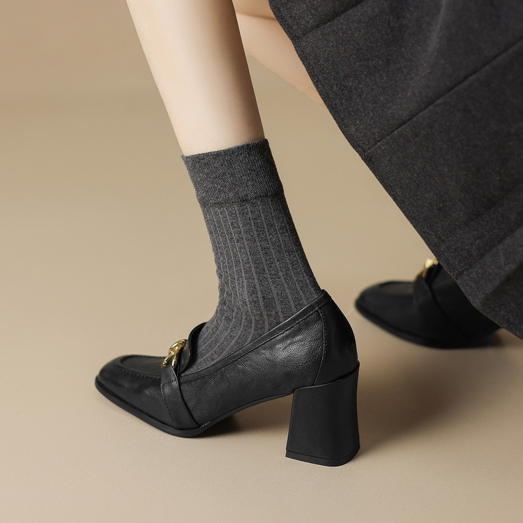 【货 号】W457【鞋面材质】羊皮【内里材质】猪皮【鞋垫材质】羊皮【鞋 底】牛筋大底【跟 高】7cm【颜 色】黑色 棕色【尺 码】34-39