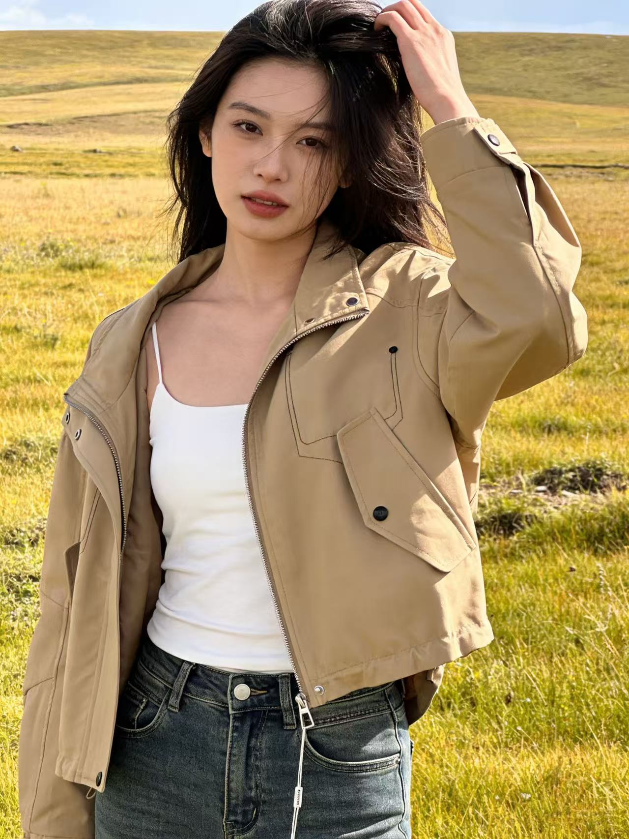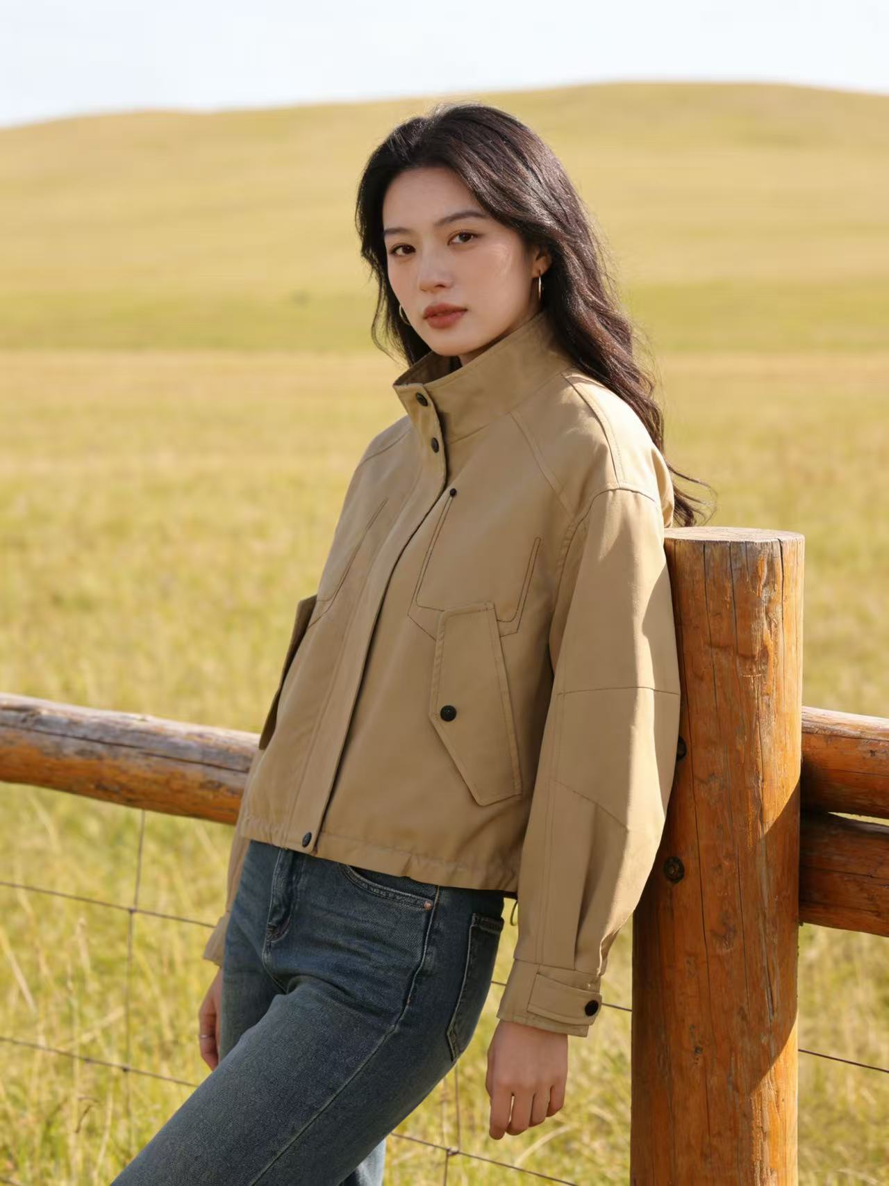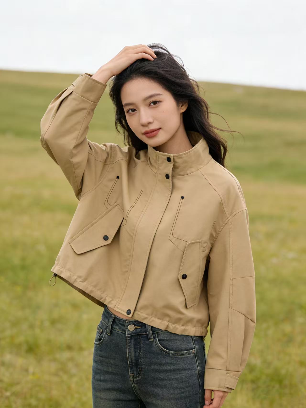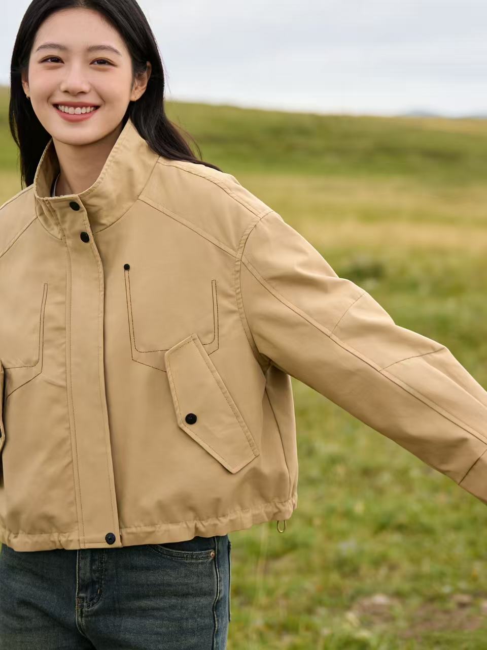 418良粉节|2026 活动爆款【自营】衣周期~T22设计感明线休闲可抽绳下摆风衣外套-喜出