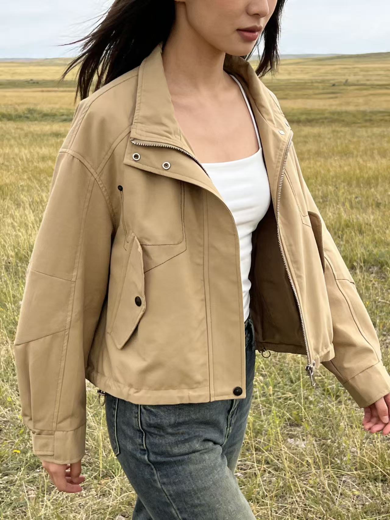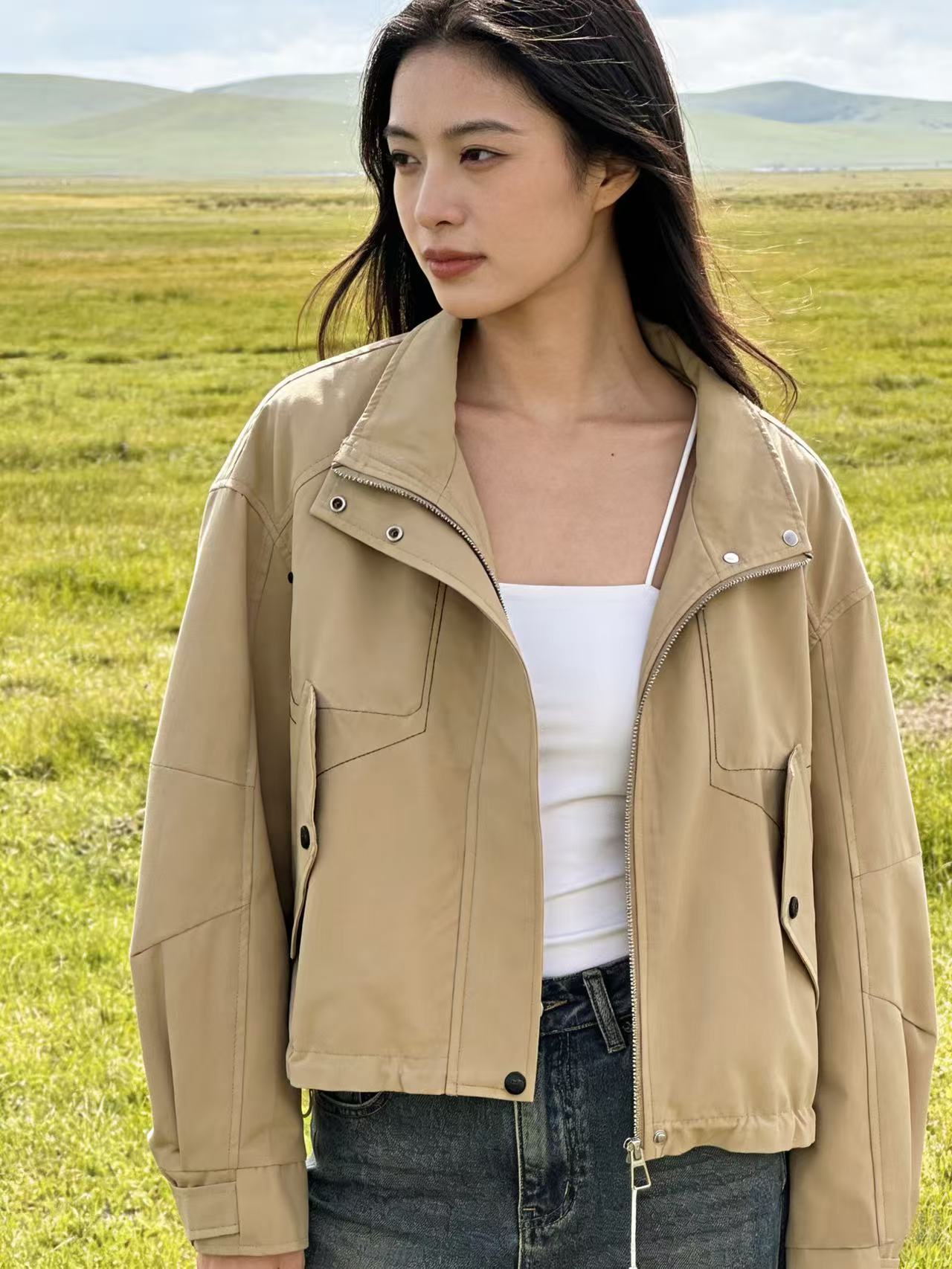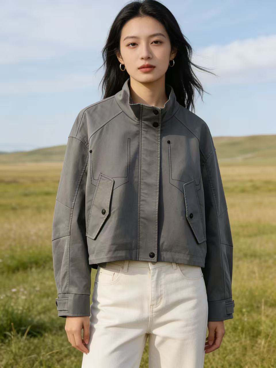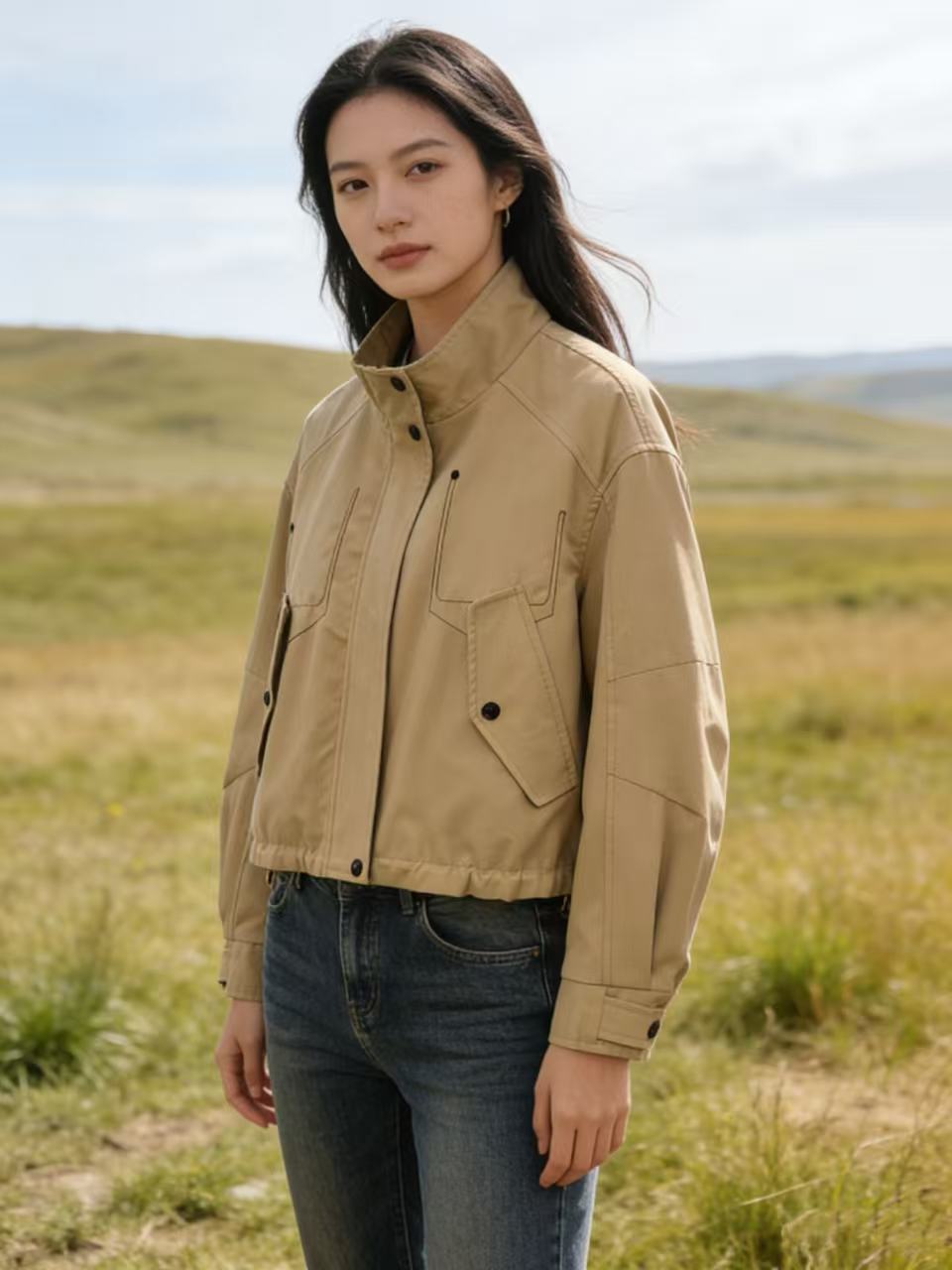 418良粉节|2026 活动爆款【自营】衣周期~T22设计感明线休闲可抽绳下摆风衣外套-喜出
