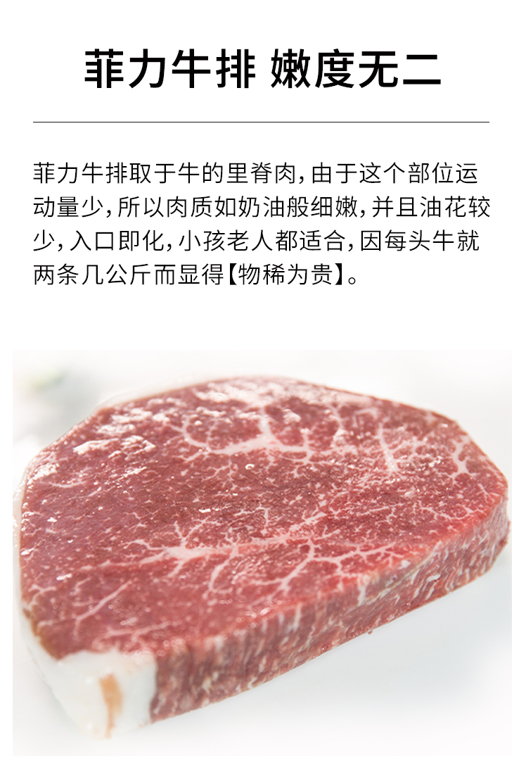 菲力牛排是由小牛柳切出来的,因为原肉块小,单一块不够重量。为保证每袋的克数,需要切好几块,来保证重量。