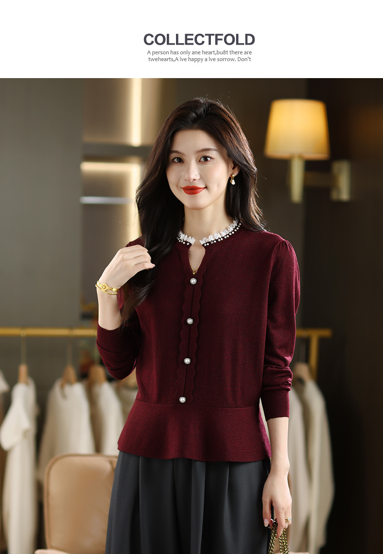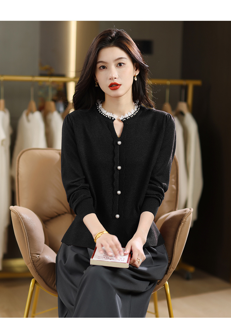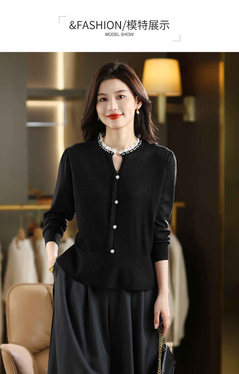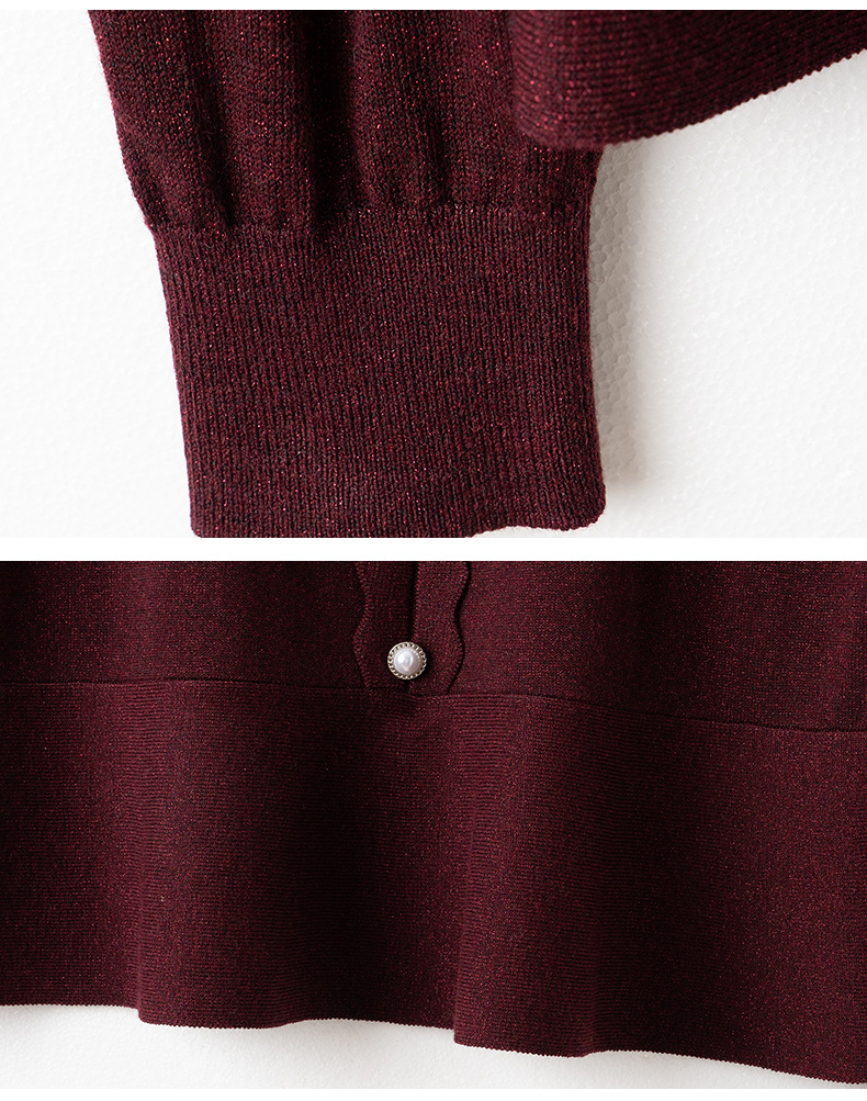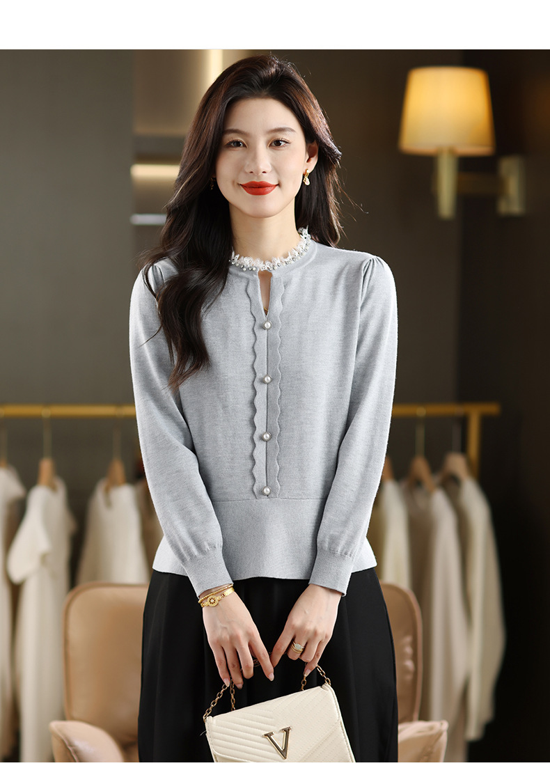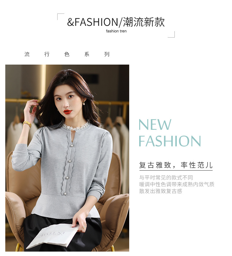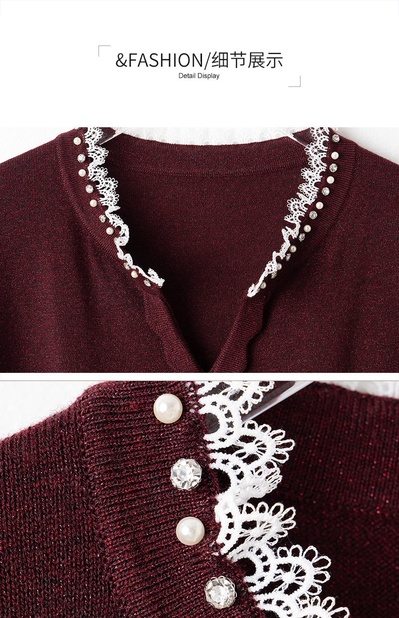 CC 101-9502拼接花边蕾丝领针织打底衫洋气收腰上衣