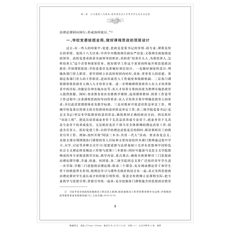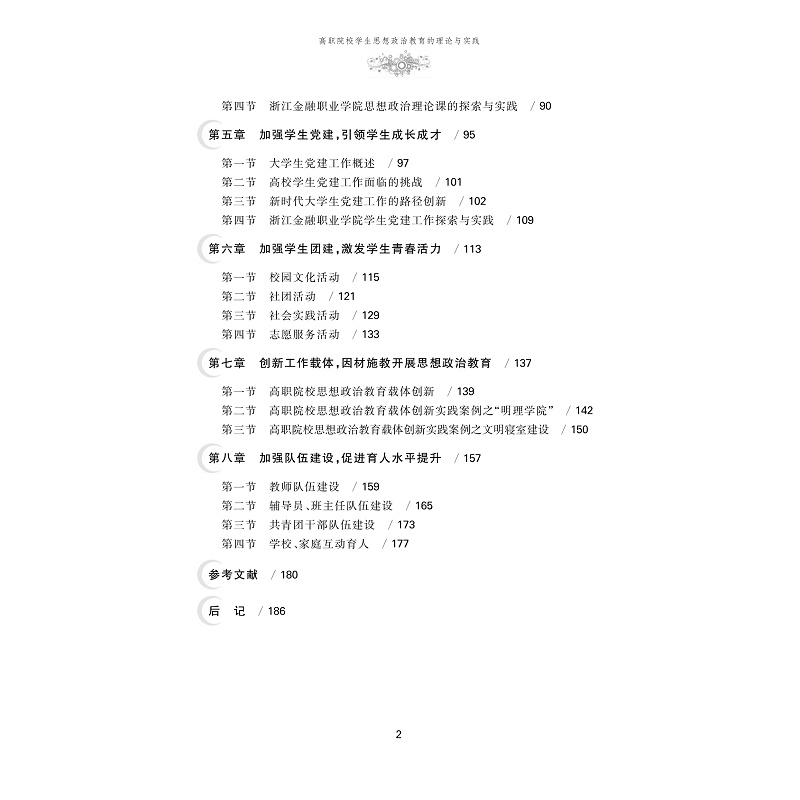 本书为教育部人文社会科学研究专项任务项目(高校思想政治工作):“基于学生‘千日成长’的高职院校育人工作体系研究”(项目编号:18JDSZ1019)研究成果。本书系统论述了构建立体化育人工作体系的重要性、必要性,从理论上阐明高职院校育人工作机制,并从实践的角度构建了高职院校的育人体系。以立德树人为根本,将思想政治教育贯穿学生成长全过程,构建立体化育人体系,完善学生思想政治工作机制,抓好意识形态工作,掌控思想政治工作的主导权,发挥主渠道作用,提升思想政治理论课的亲和力和针对性,加强学生党建,引领学生成长成才,加强共青团建设,发挥团组织在思想政治教育中的重要作用,创新工作载体,因材施教开展思想政治教育,加强队伍建设,促进学生思想政治工作水平提升。