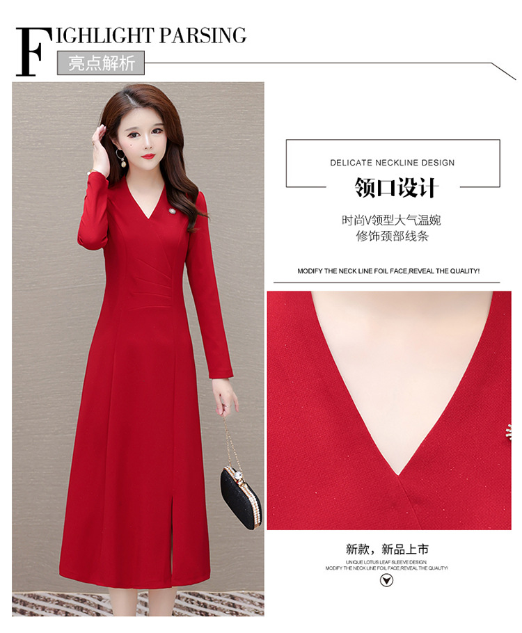 QYM 1315C361-Y连衣裙中长款开衩礼服裙 商品图4