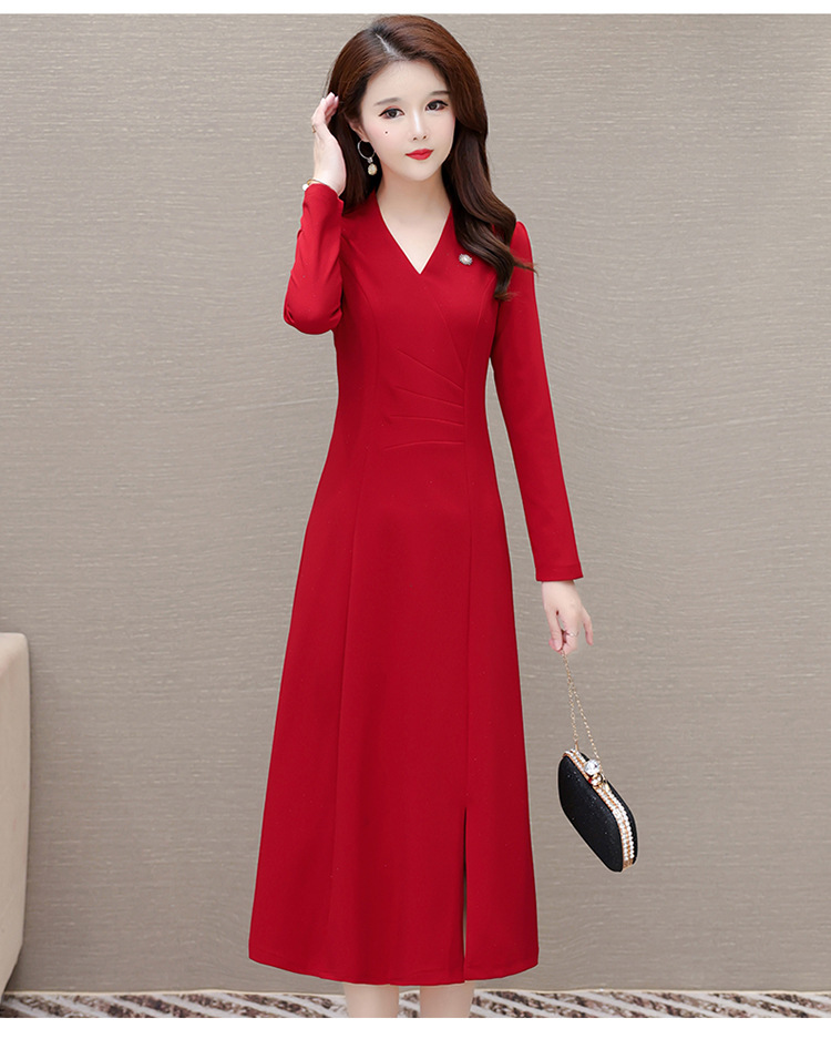 QYM 1315C361-Y连衣裙中长款开衩礼服裙 商品图1