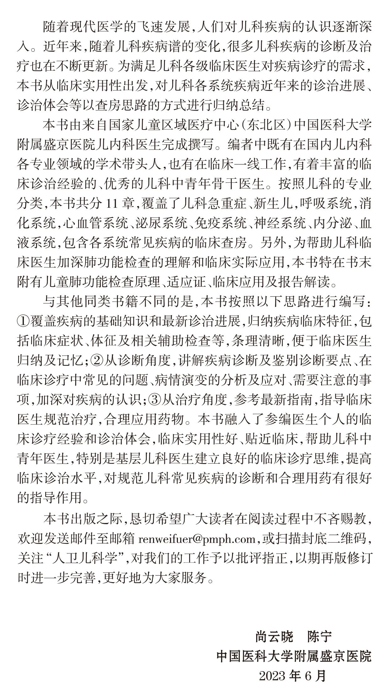 2.编写团队来自儿科11个专业、均为在临床一线工作的优秀的儿科中青年临床医生,确保本书的实用性及指导性。